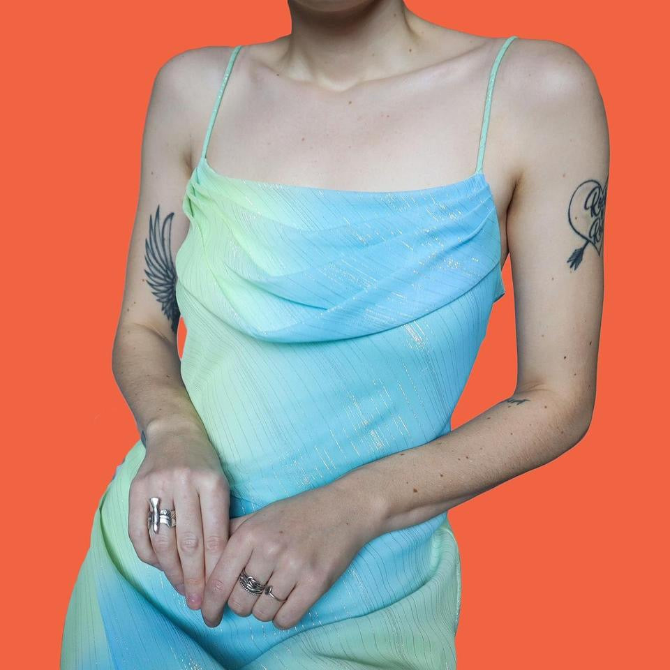🌹Glittery green & blue evening dress UK 12🌹Stunning glittery green & blue slip dress with a cowl neckline & stretch lining🌹