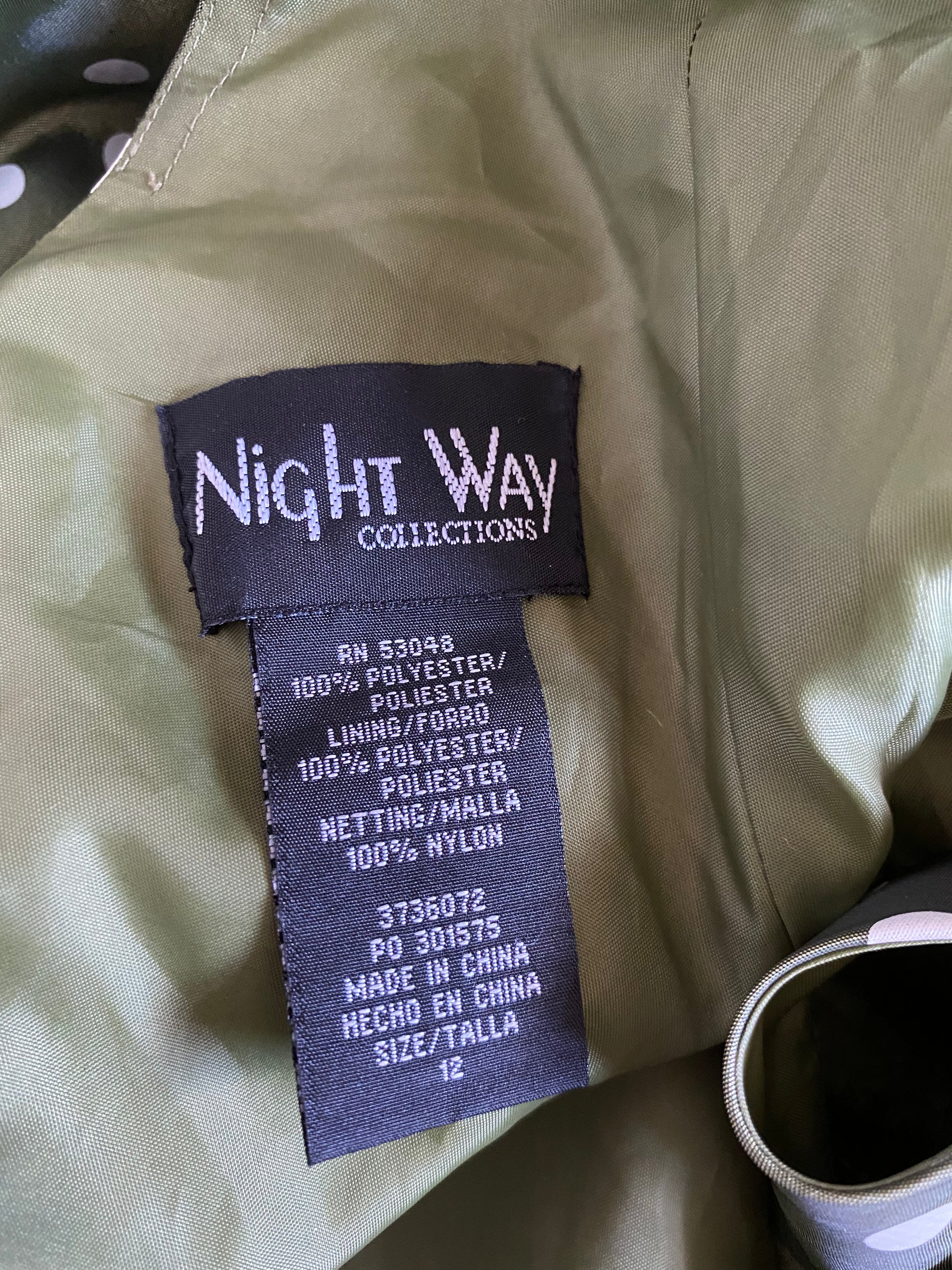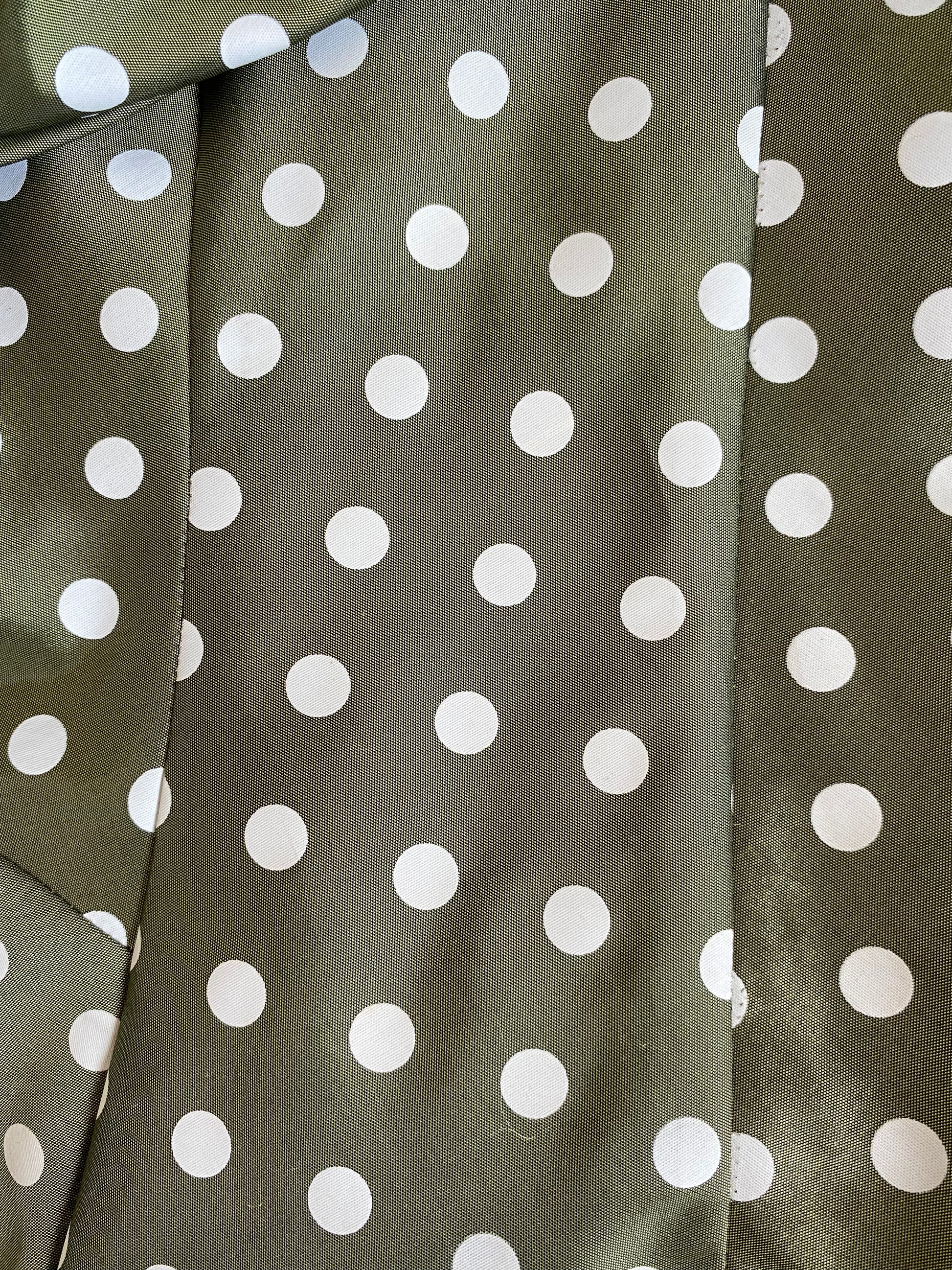 🌹Olive green polka dot a line fit and flare midi dress with a tie at the back which draws in the waist, a netted underskirt to hold the shape of the dress & a zip up the back UK 12🌹