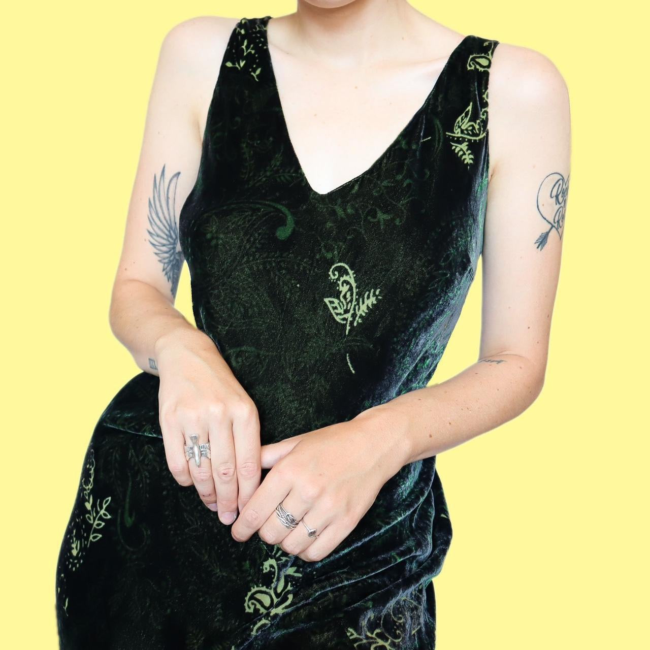 🌹Green velvet dress UK 12🌹Beautiful 15% silk blend dark green velvet paisley print evening dress🌹