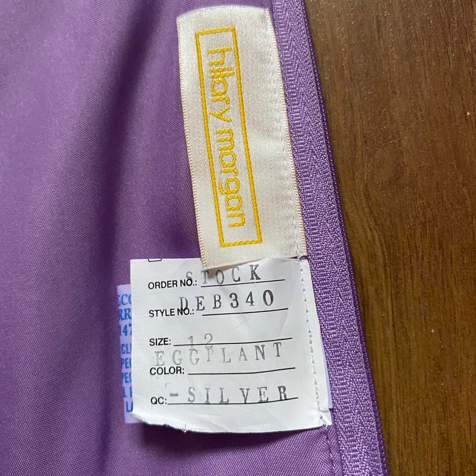 Hilary Morgan purple strapless taffeta prom dress uk 10-12