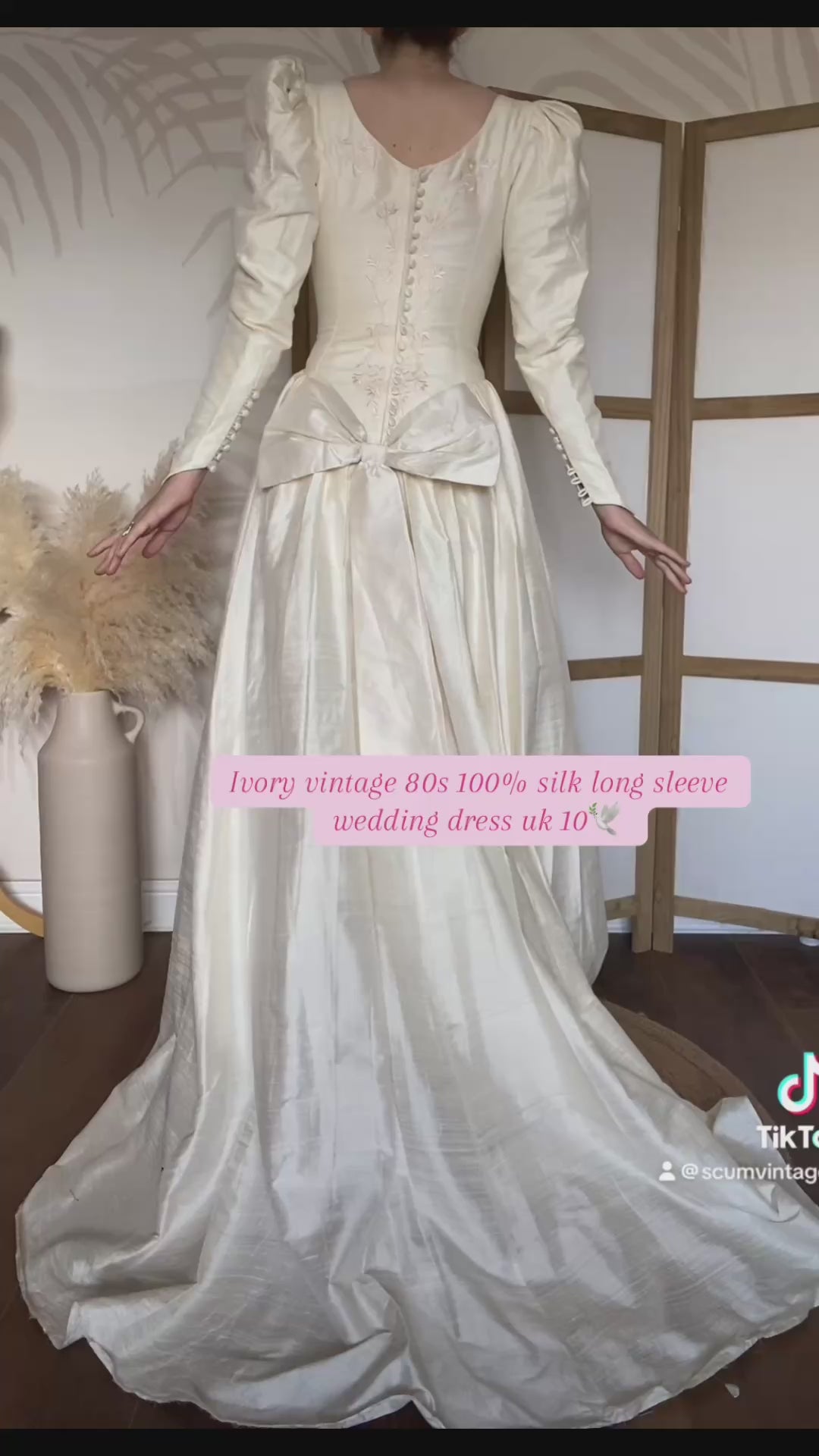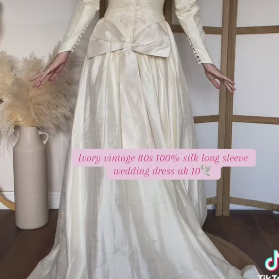 Ivory 80s 100% silk long sleeve wedding dress uk 10