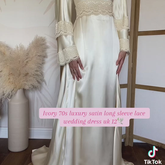Ivory luxury satin long sleeve 70s wedding dress uk 12