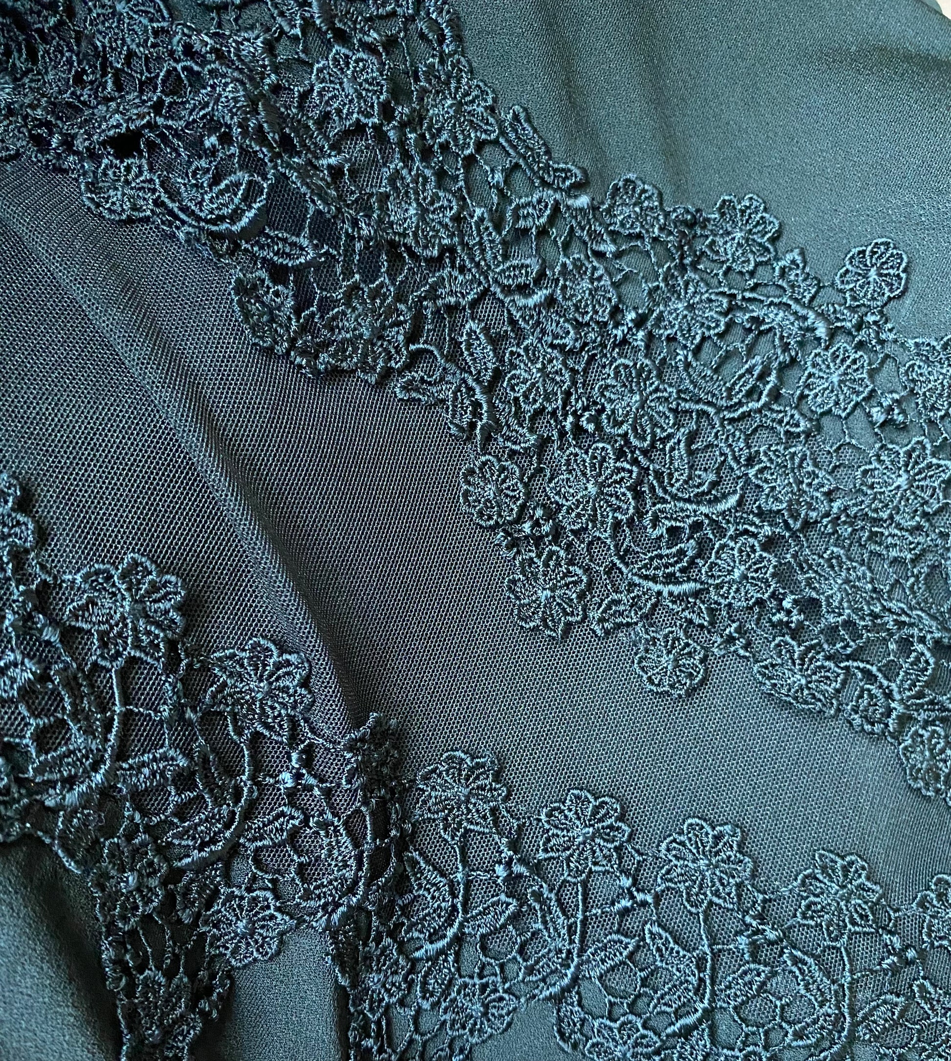 Joseph Ribkoff black stretch evening dress with a sheer lace detail waist, a padded bust & a zip up the back UK 12