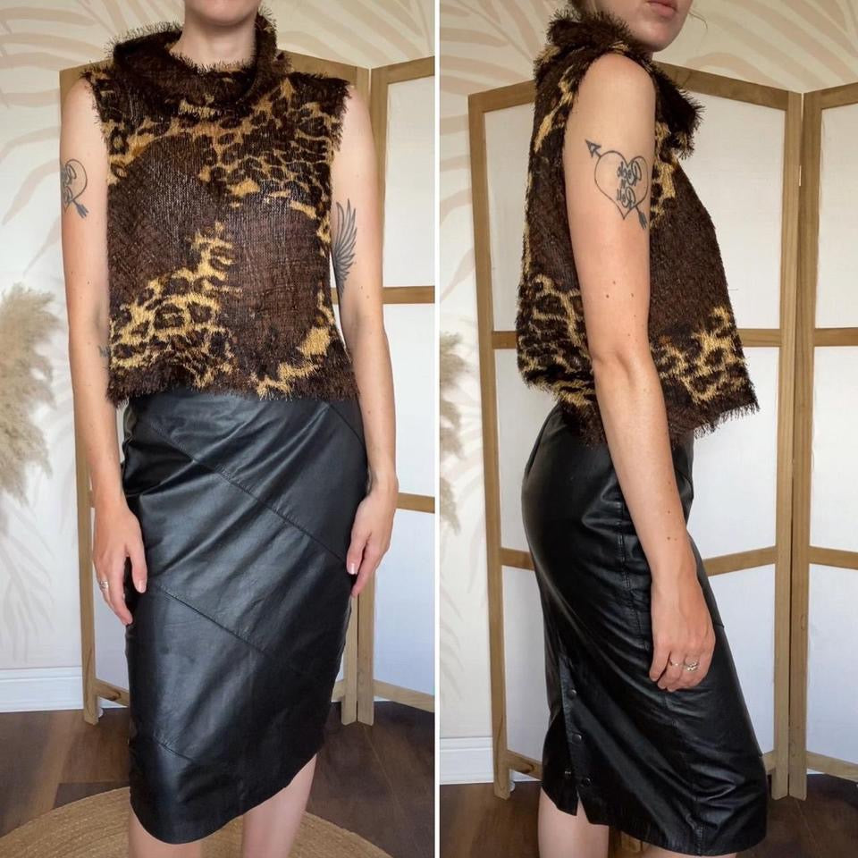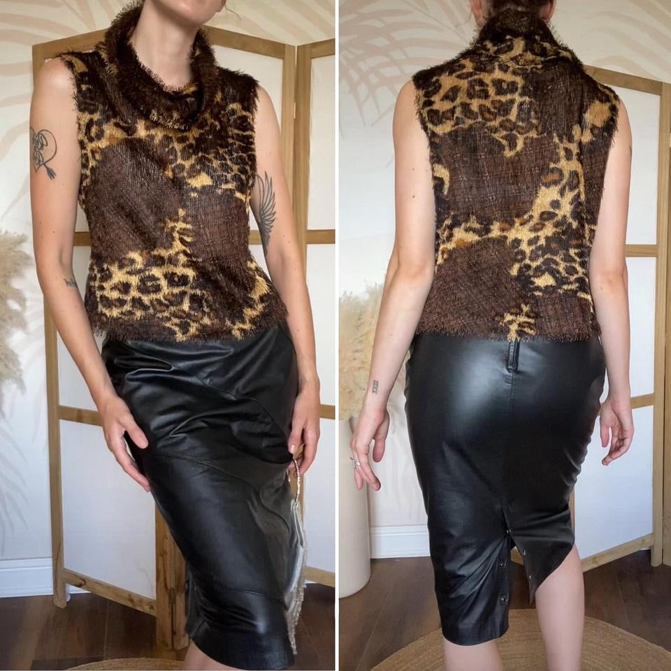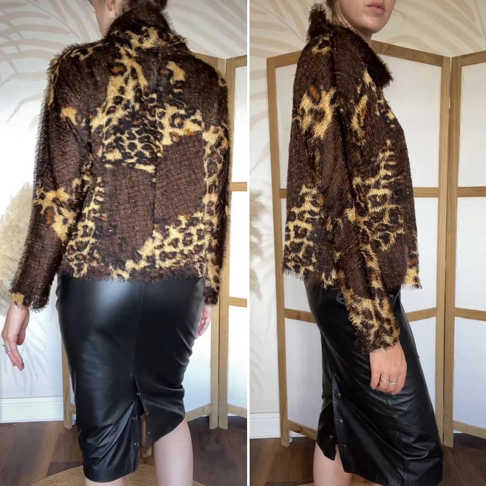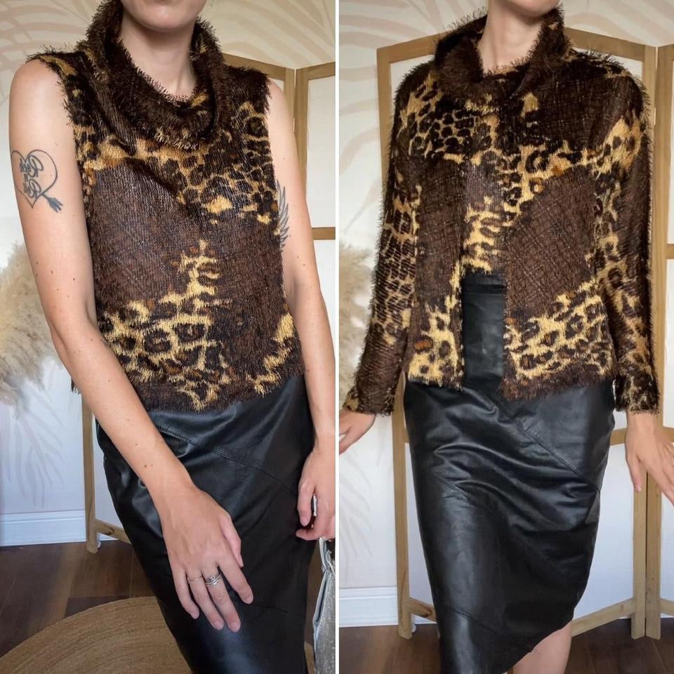 Designer Joseph Ribkoff fluffy leopard print 2 piece boxy top with a turtle neck & cardigan with a gold clasp at the front uk 12