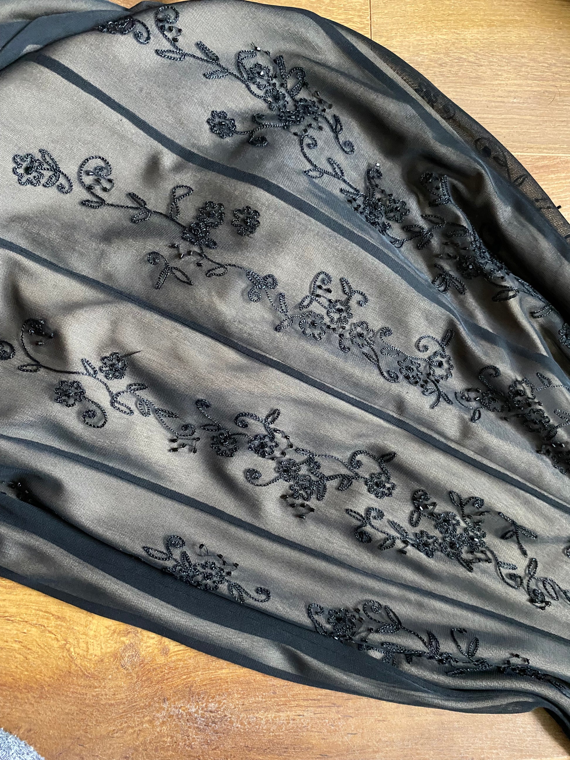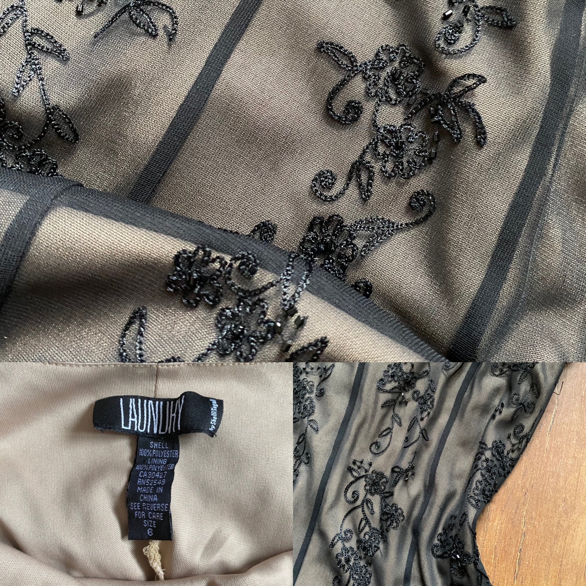 Black lace stretch slip dress with a tan lining & bead detailing UK 10