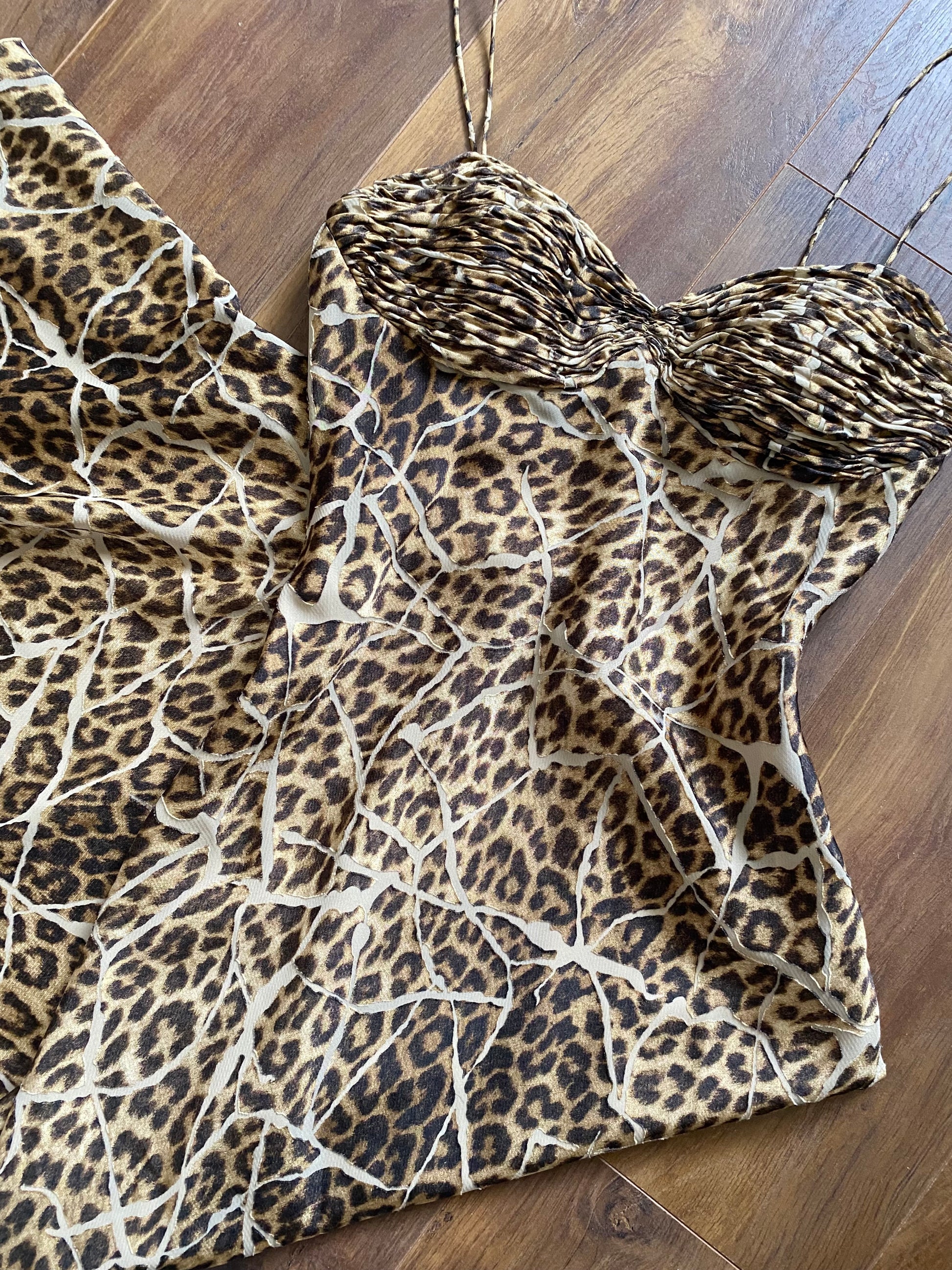 Leopard print evening dress with a padded bust & a zip up one side UK 10