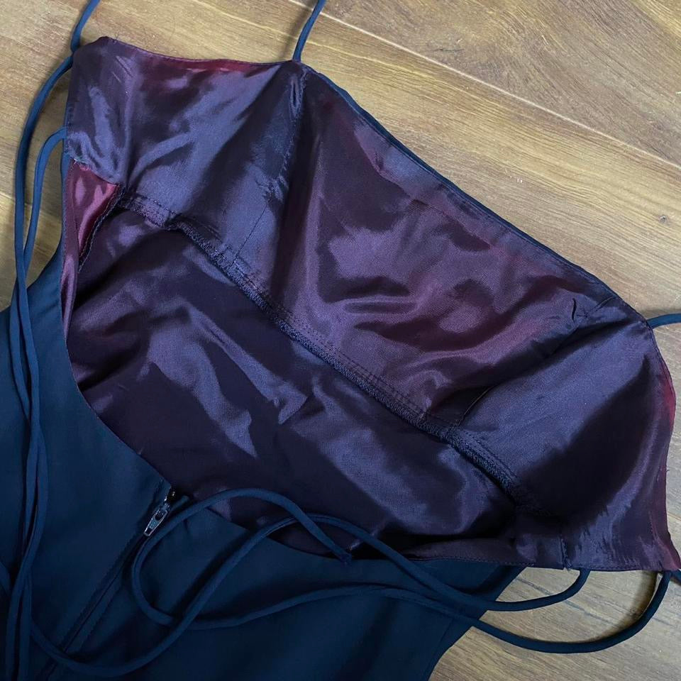 🌹Dark navy evening dress with an open back with two ties across & a zip up the back UK 10🌹