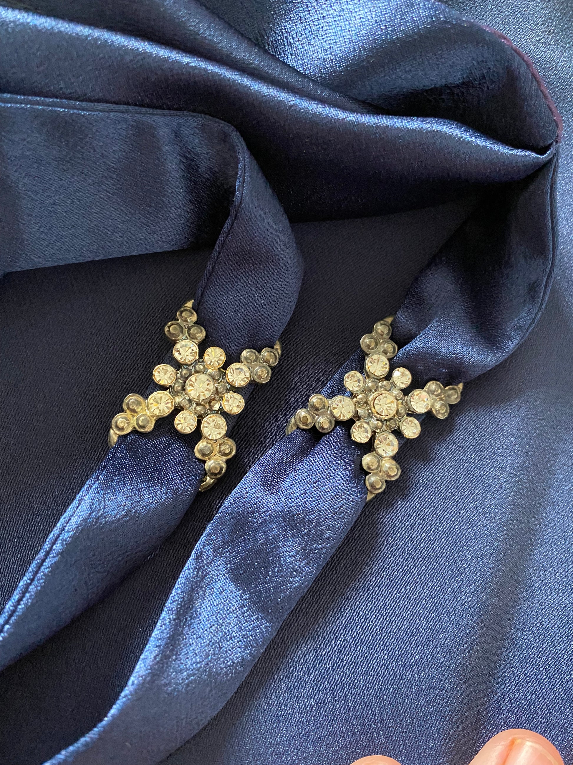 🌹Blue evening dress with diamanté detail straps, a satin cowl neckline, a zip up the back & a draped back - also coming with a matching shawl UK 16🌹