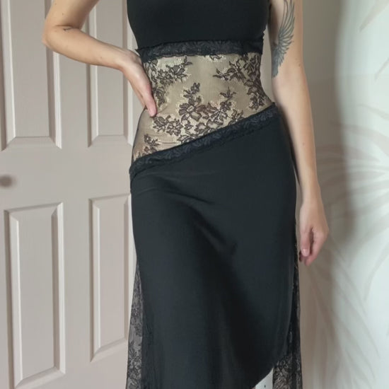 🌹Beautiful designer Nick Coleman black stretch lace cut out detail dress UK 8🌹