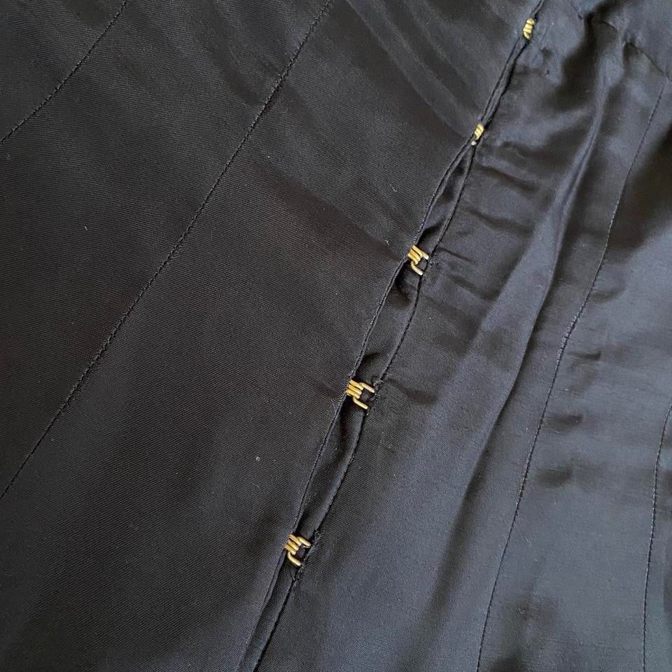 Chic black long sleeve mini dress with pleated flared hem & hook & eye fastenings down the front UK S/6-8