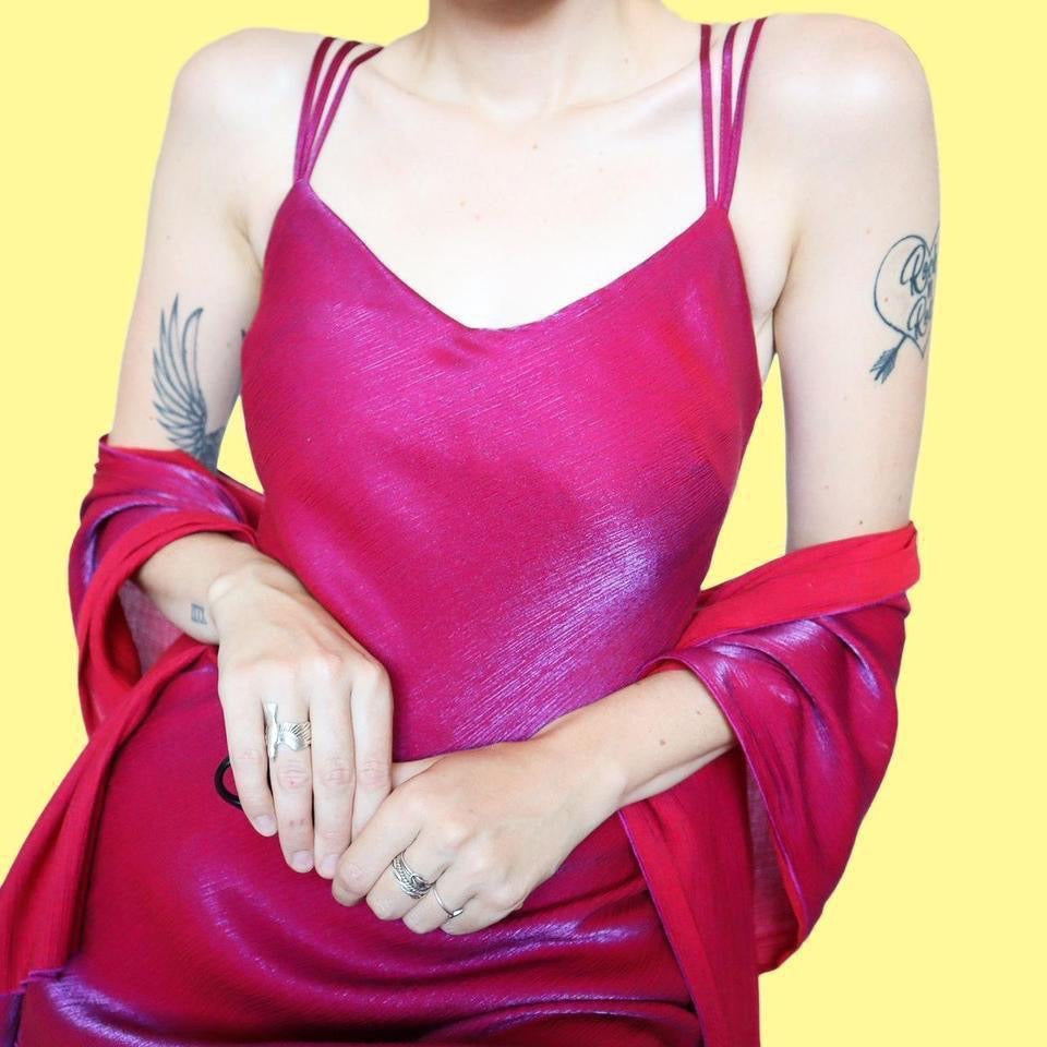 🌹Pink evening dress UK 14🌹Beautiful pink iridescent slip dress with cross over straps at the back & a matching shawl🌹