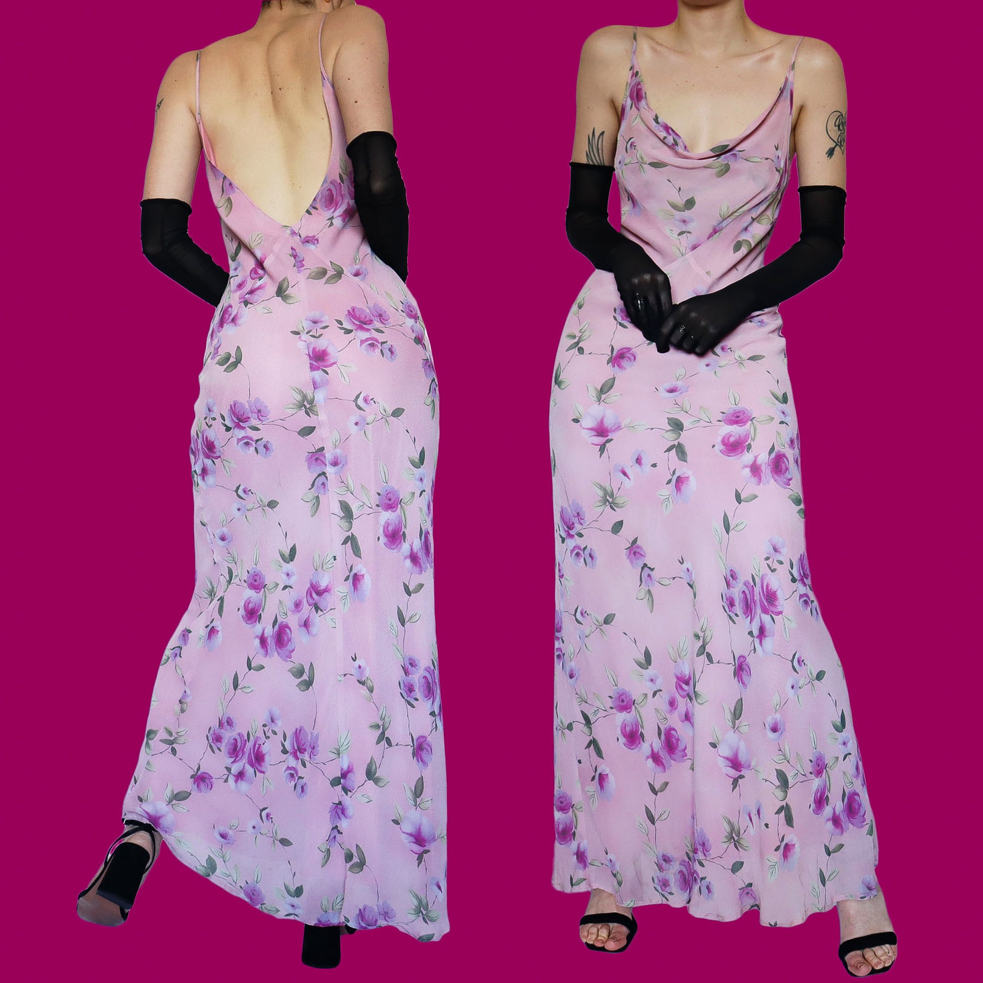 Pink floral slip evening dress UK 14