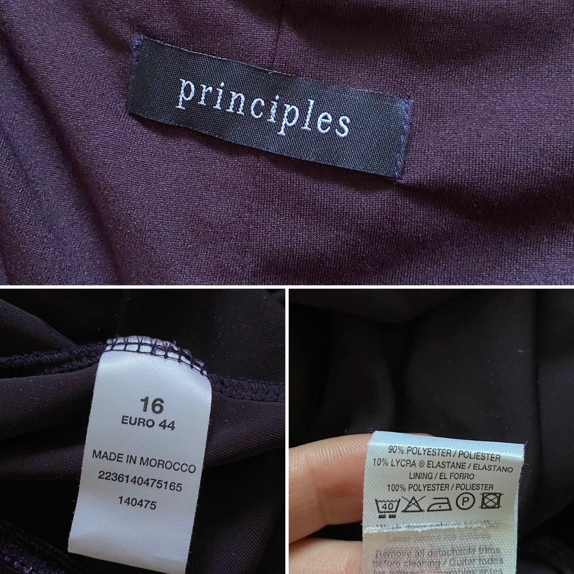 Purple velvet stretch Principles evening dress with a low open back UK 16