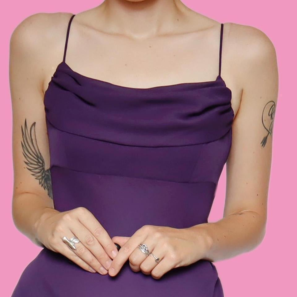 🌹Purple slip dress UK 14 & UK 16🌹Beautiful purple chiffon evening dress with a chiffon cowl neckline, a chiffon trail down the back & a zip up the back🌹