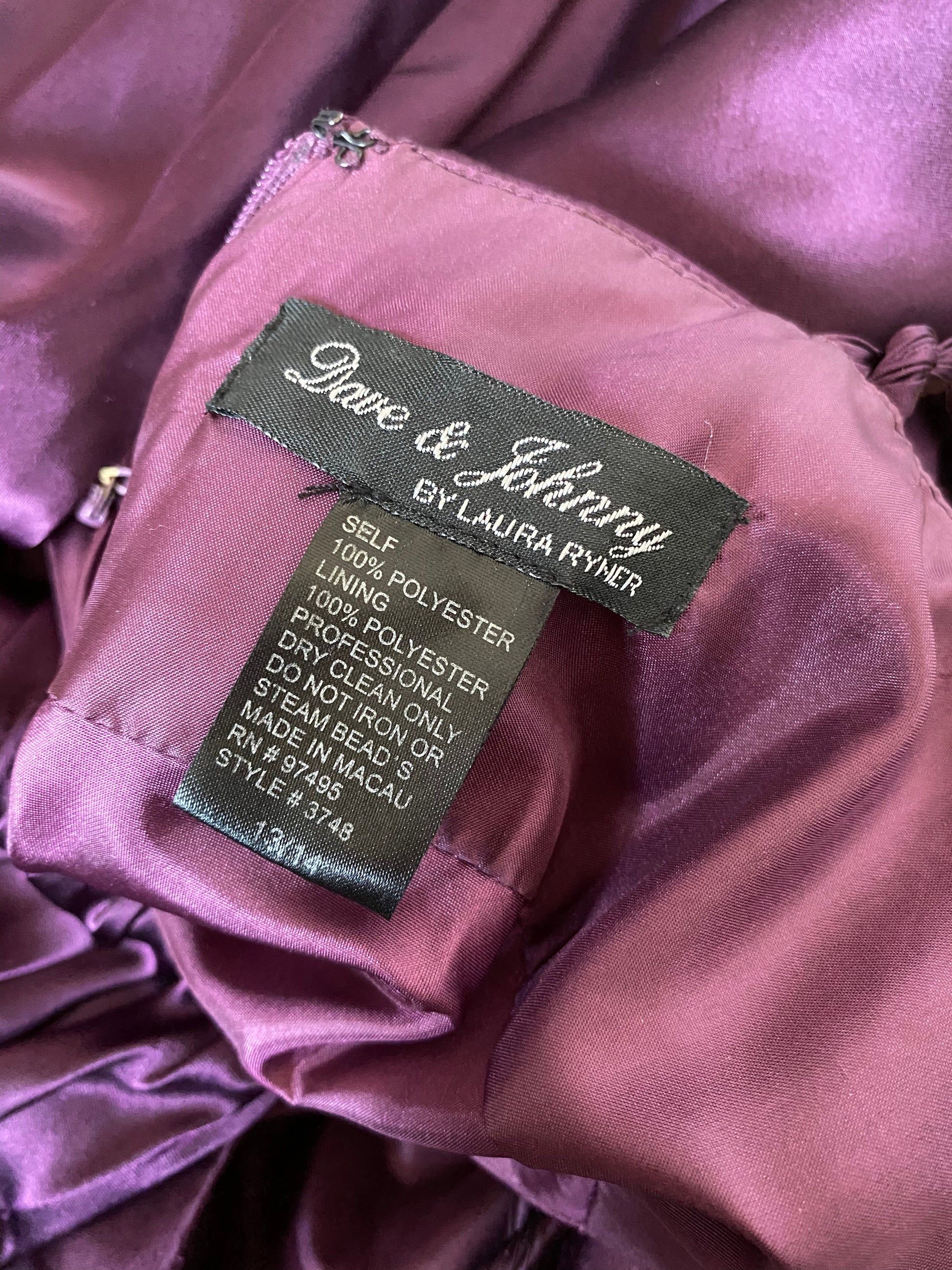 🌹Purple satin evening dress with a padded bust, bead detailing, a flared hem at the back & a zip up the back UK 8🌹
