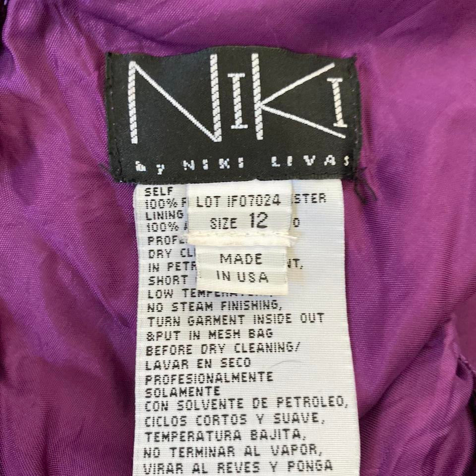 🌹Purple satin evening dress with an open back, hook & eye fastenings at the back of the neck, a zip up the back, a padded bust & bead & sequin detailing UK 12🌹