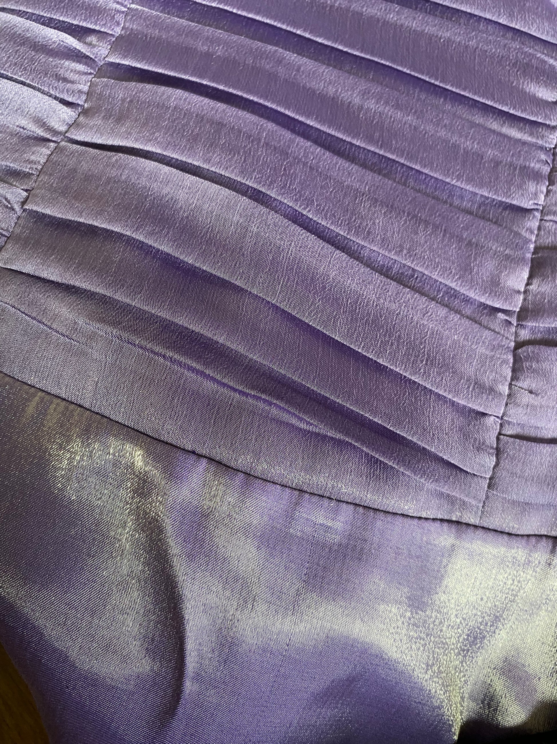 Purple strapless evening gown with an adjustable lace up back, boned bust & waist & a zip up the back UK 6/8