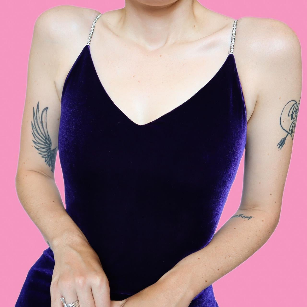 🌹Purple velvet dress UK 12🌹Beautiful purple velvet stretch evening dress with diamanté straps & a low back🌹