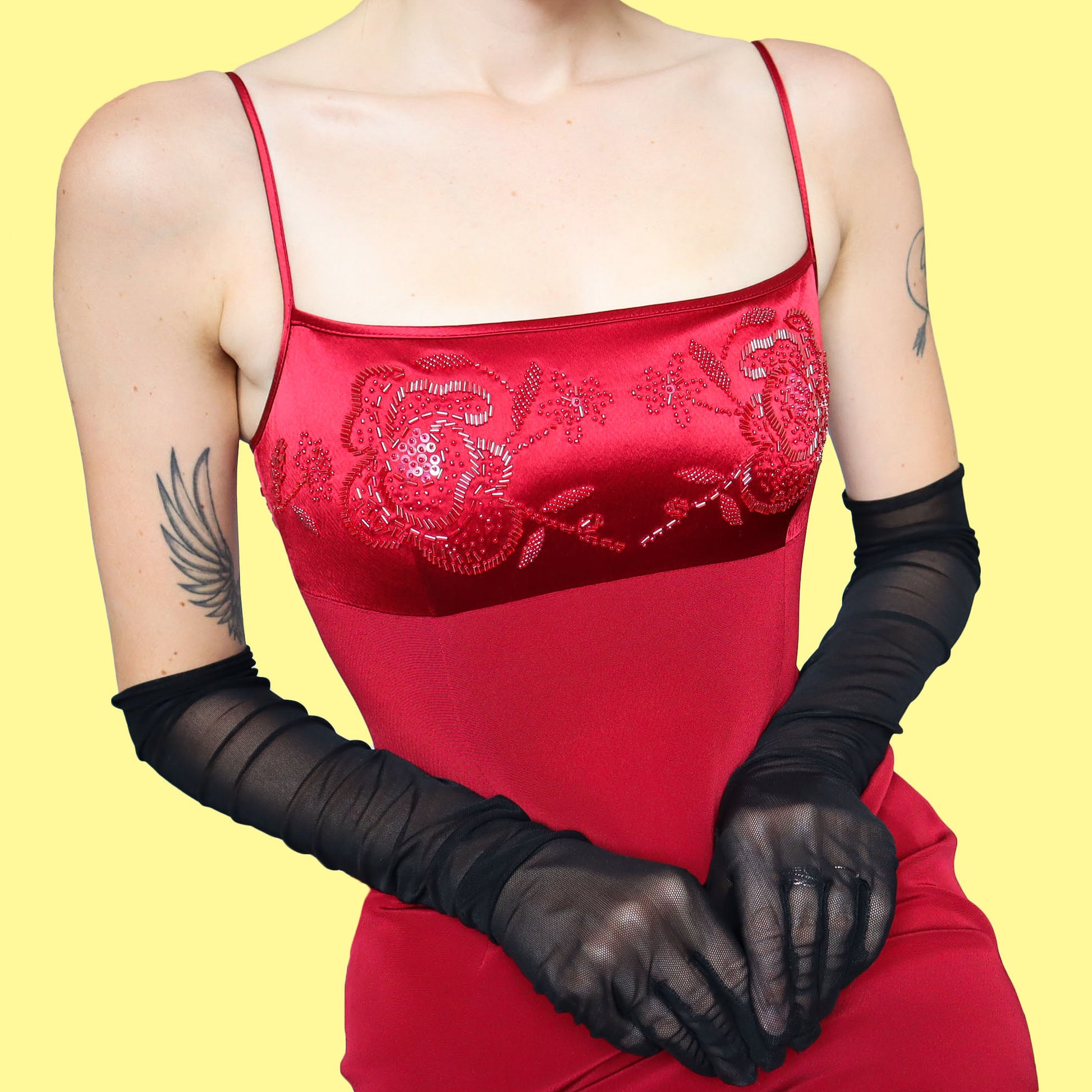 🌹Red beaded evening dress UK 8🌹Chic red fitted maxi dress with a beaded side & bust, a slit up one side & a zip up the back🌹