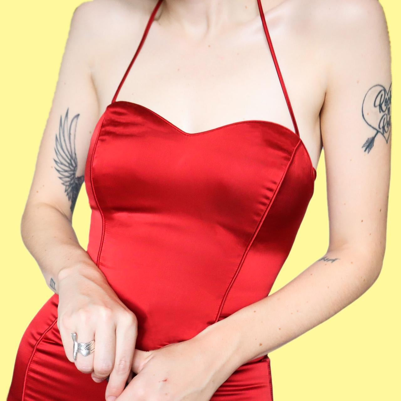 🌹Red fishtail prom dress UK 8🌹Beautiful red evening dress with a fishtail hem, netted underskirt to hold the shape, a halter neck tie around the neck & a zip up the back🌹