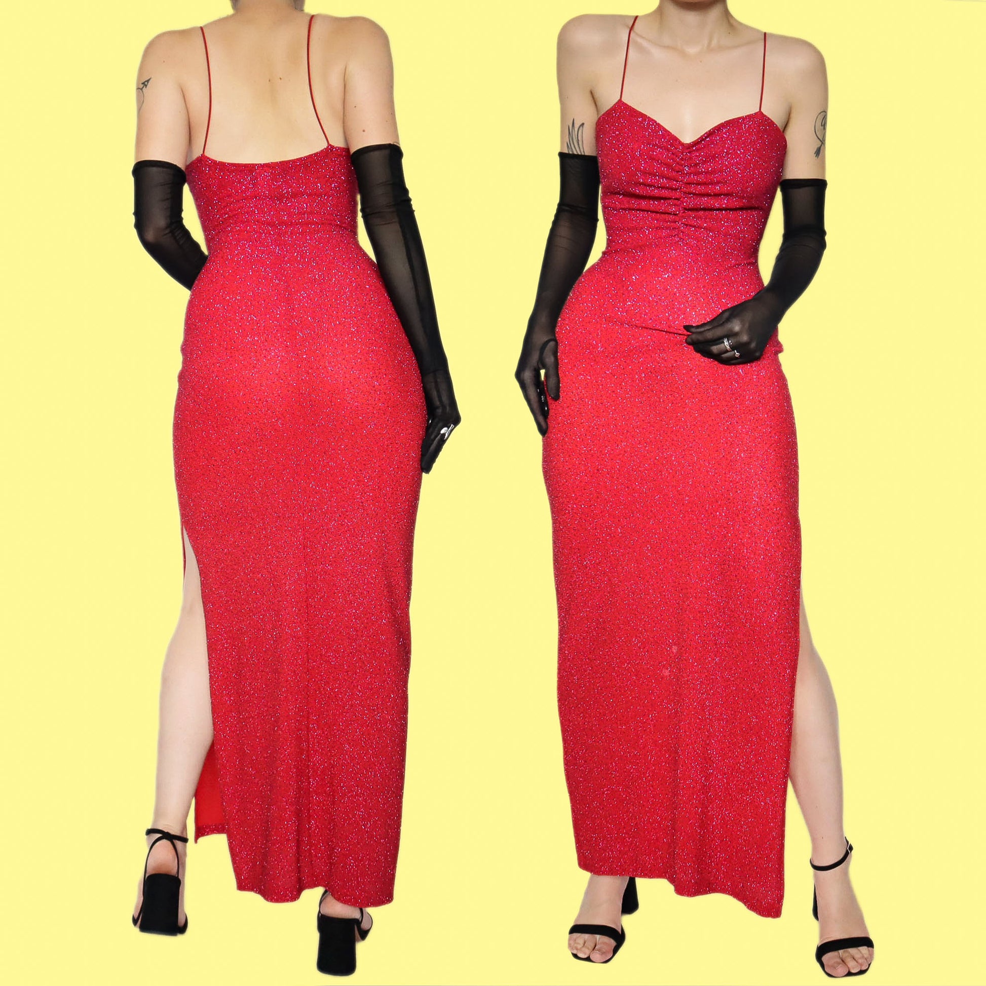 🌹Red glitter gown UK 12🌹Beautiful glittery red stretch evening dress with a runched bust & a slit down one side🌹
