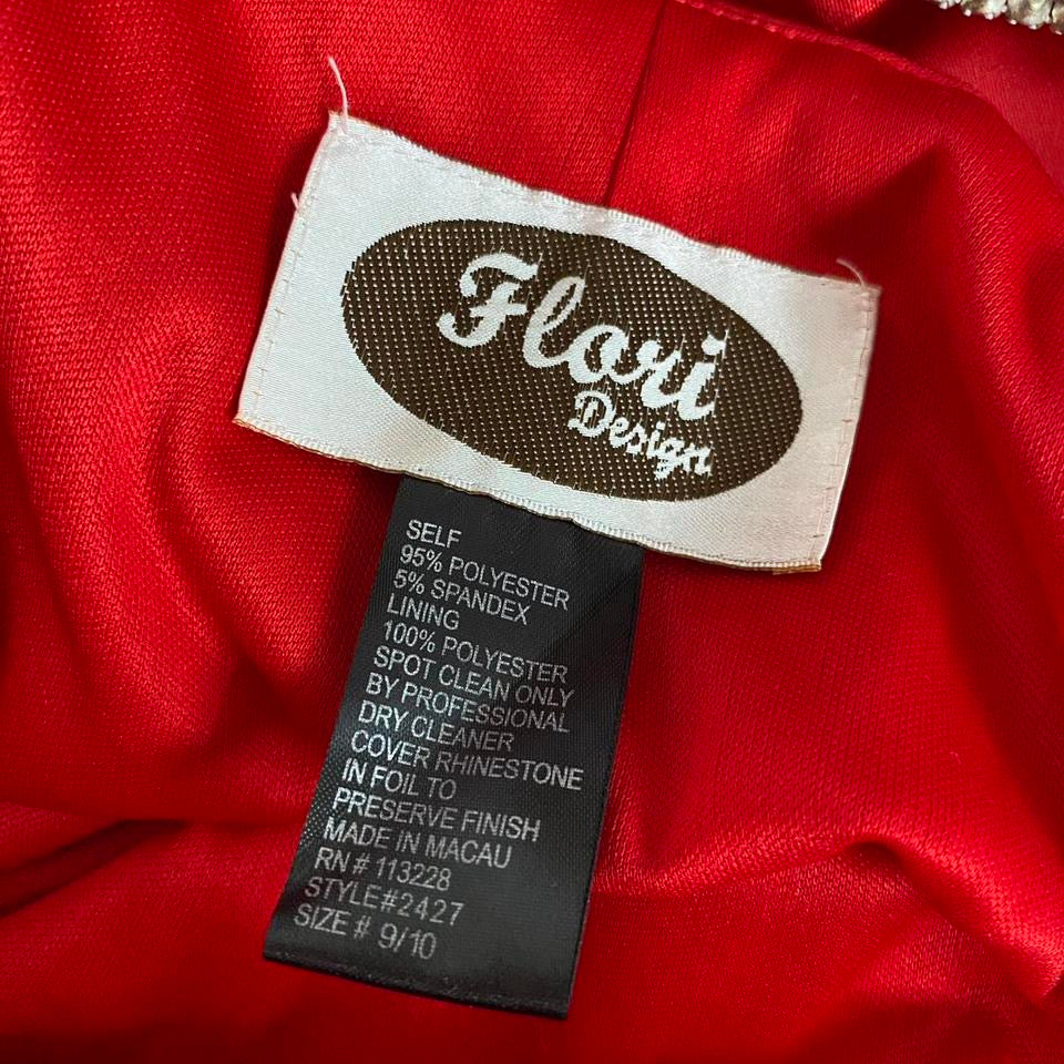 Red halter-neck diamanté evening gown UK 10-12