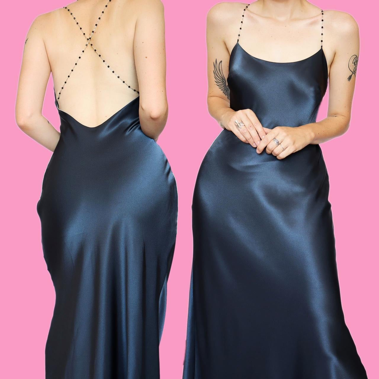 🌹Reversible satin evening dress UK 12🌹Beautiful dark and light grey satin reversible slip dress with bead straps & a low back🌹