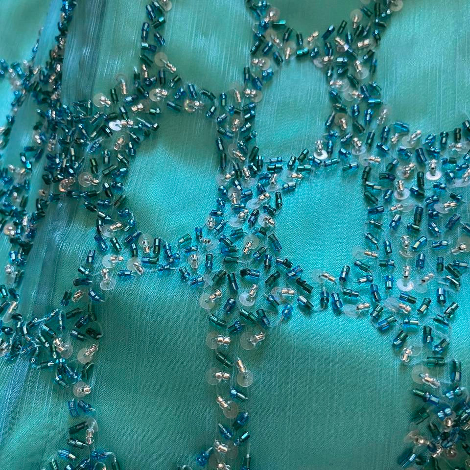Sapphire beaded a-line dress with shawl UK 12