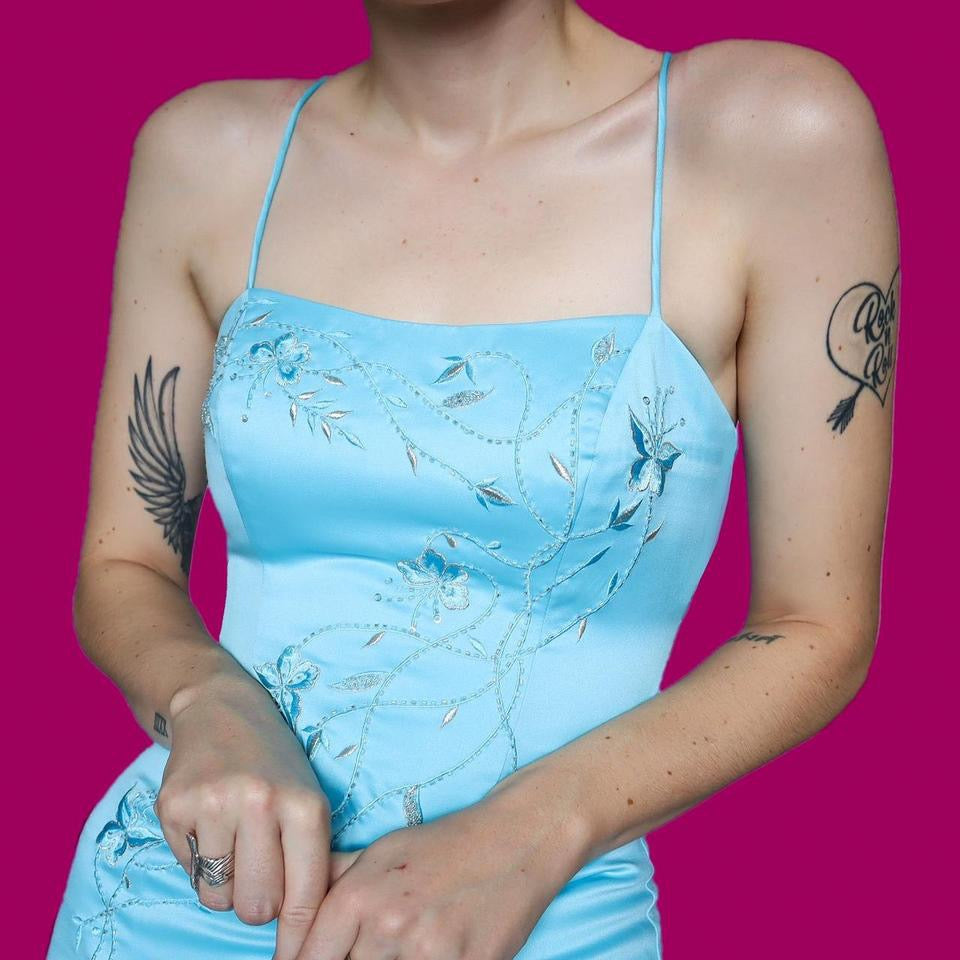 🌹Baby blue evening dress UK 8🌹Stunning baby blue a line evening dress with a adjustable lace up back, bead & embroidered floral bust detail & a zip up the back🌹