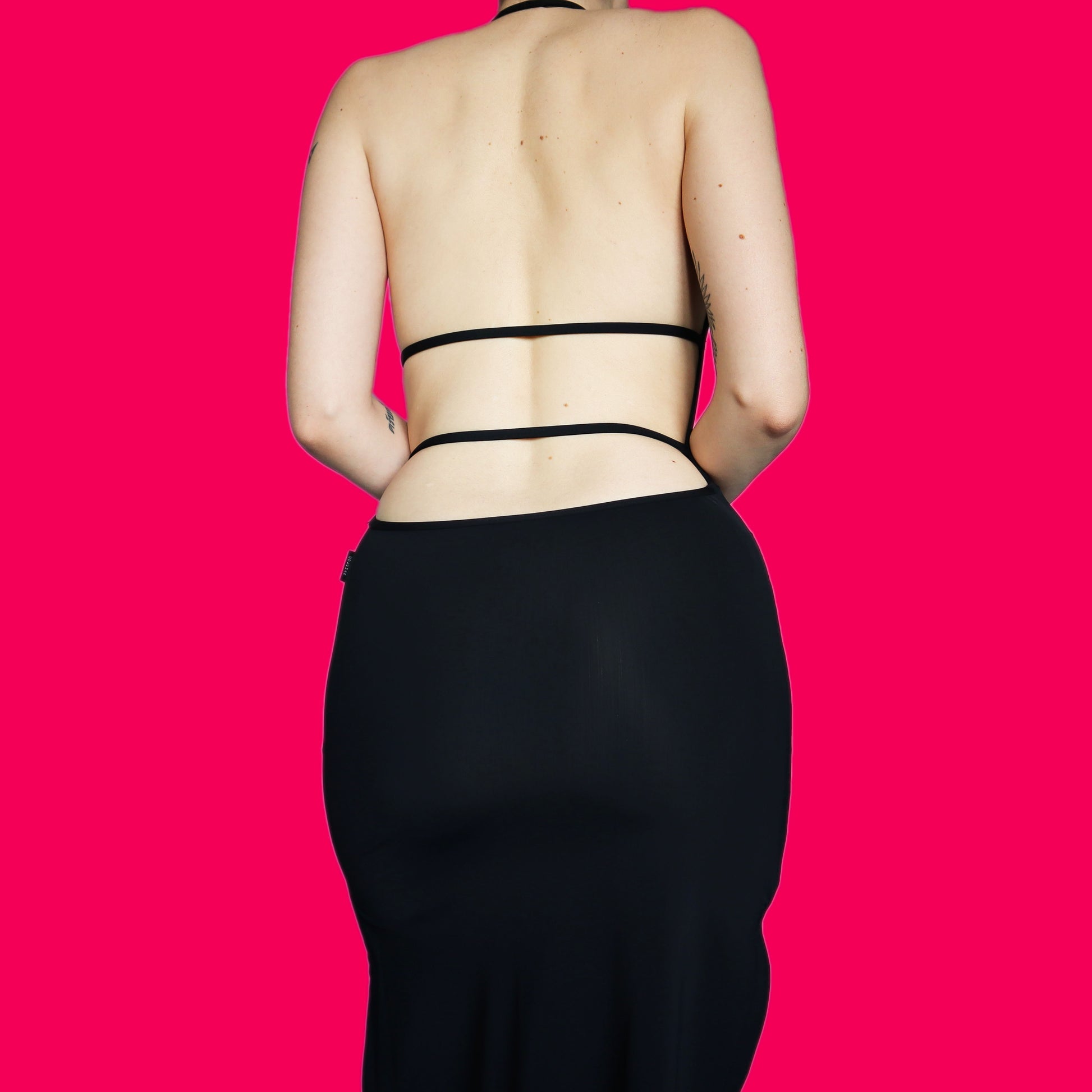 Sexy Nick Coleman black stretch low back dress UK 8 & UK 12