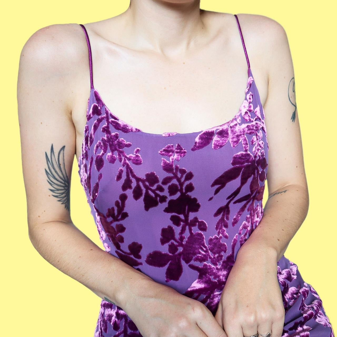🌹Purple velvet dress UK 12🌹Stunning 25% silk blend purple devore velvet slip dress with two slits down the front & a zip up the back🌹