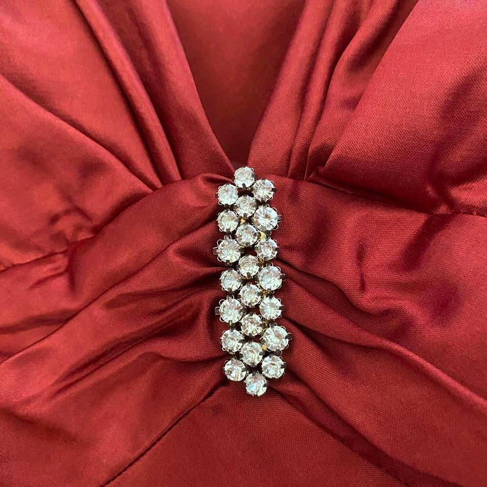 🌹Beautiful red silky evening dress with a padded bust, diamante waist detail & trail down the back UK 8🌹