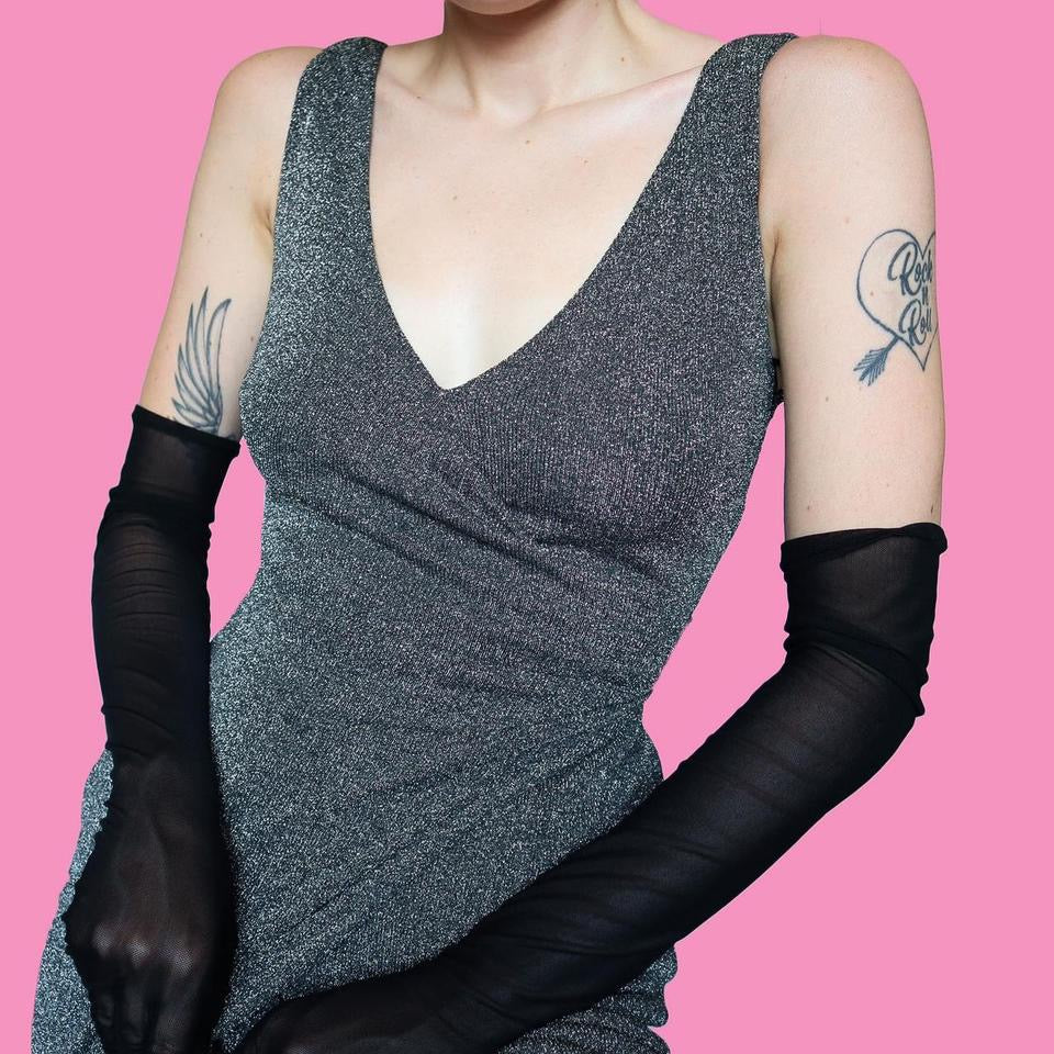 Silver Frank Usher stretch wrap evening dress UK 10-12