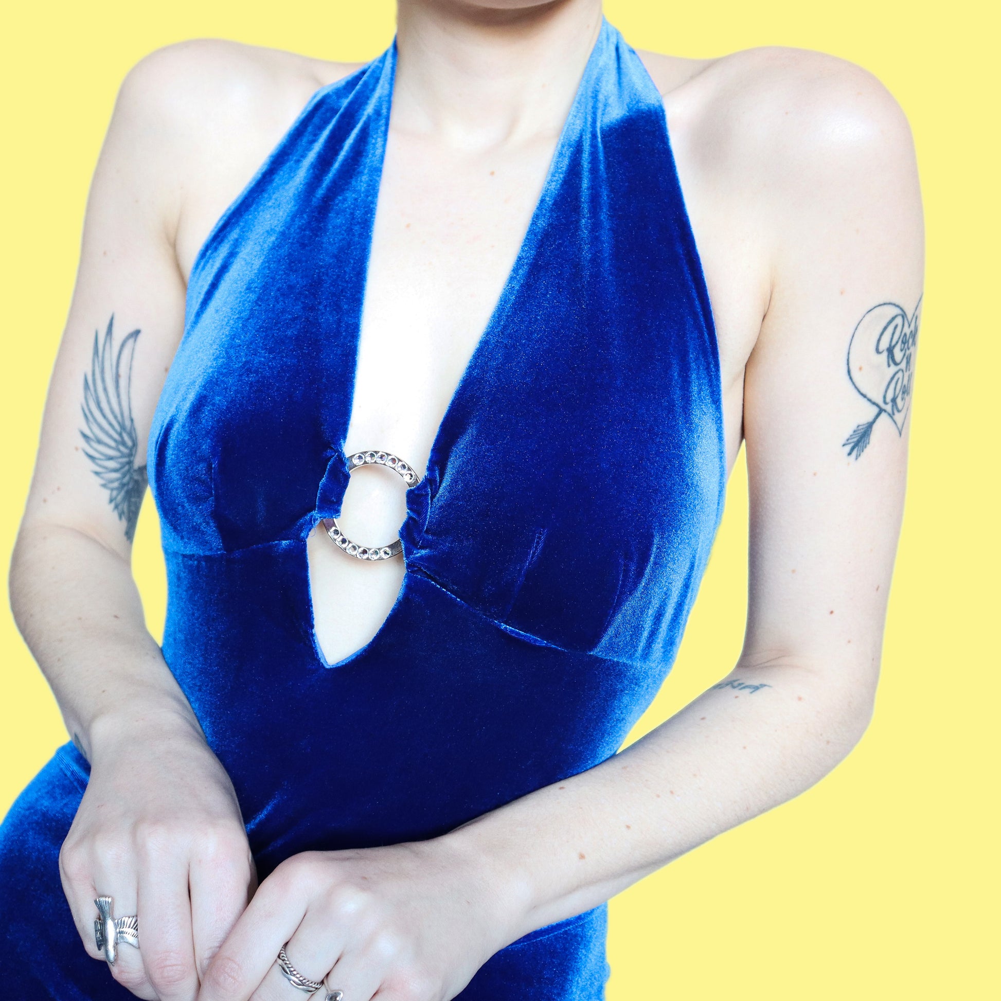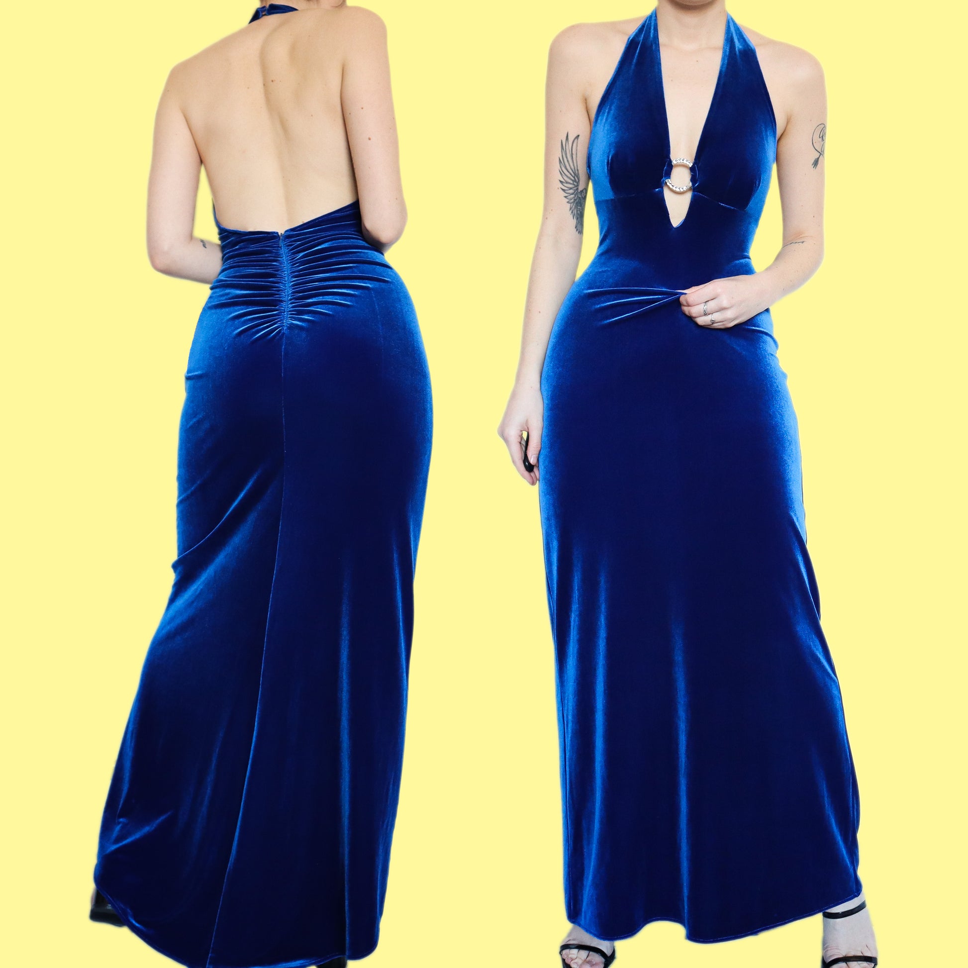 Stunning electric blue velvet halter neck evening dress UK 12