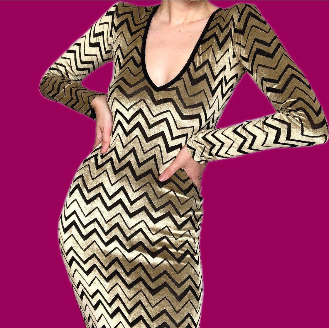 🌹Really beautiful gold velvet stretch long sleeve body-con evening dress UK XS/S🌹