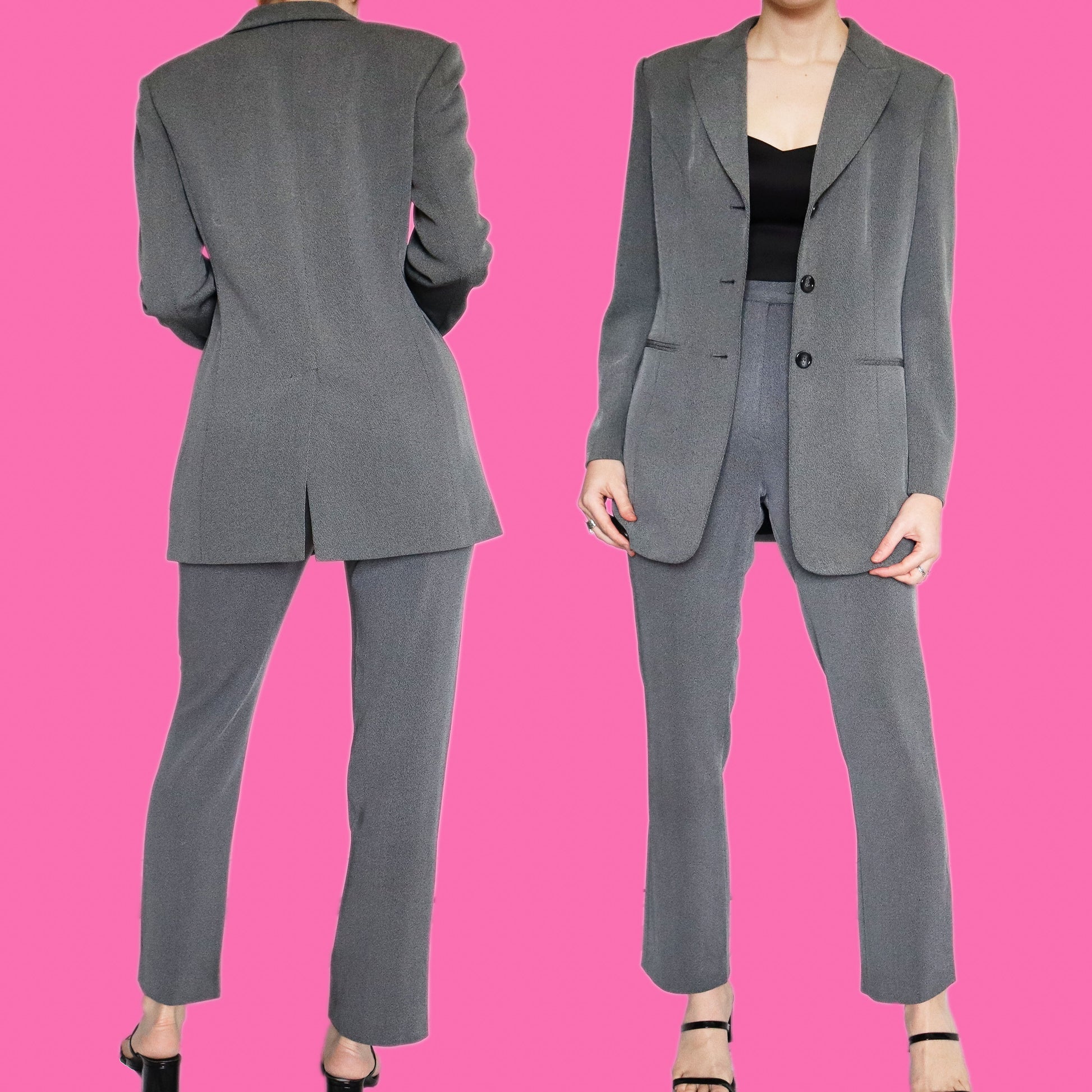 🌹Chic grey 2 piece trouser/jacket suit set UK 10🌹The trousers are high waisted with a straight leg & a button/zip fastening at the waist🌹The jacket has two pockets on the front & button fastenings down the front🌹