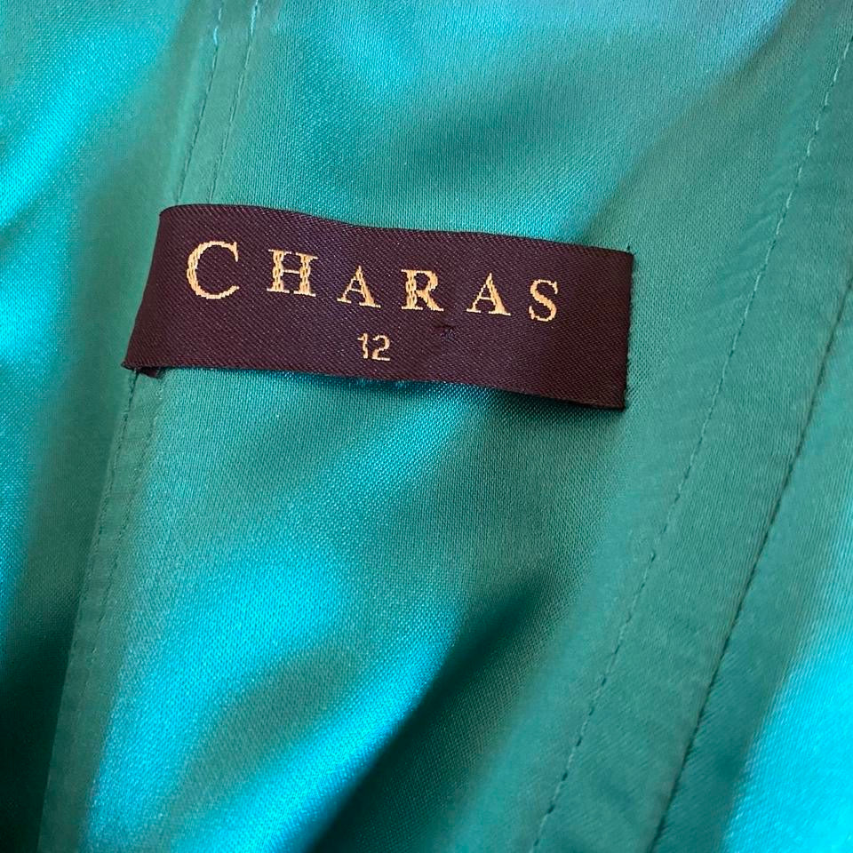 Teal strapless lace up evening gown UK 10