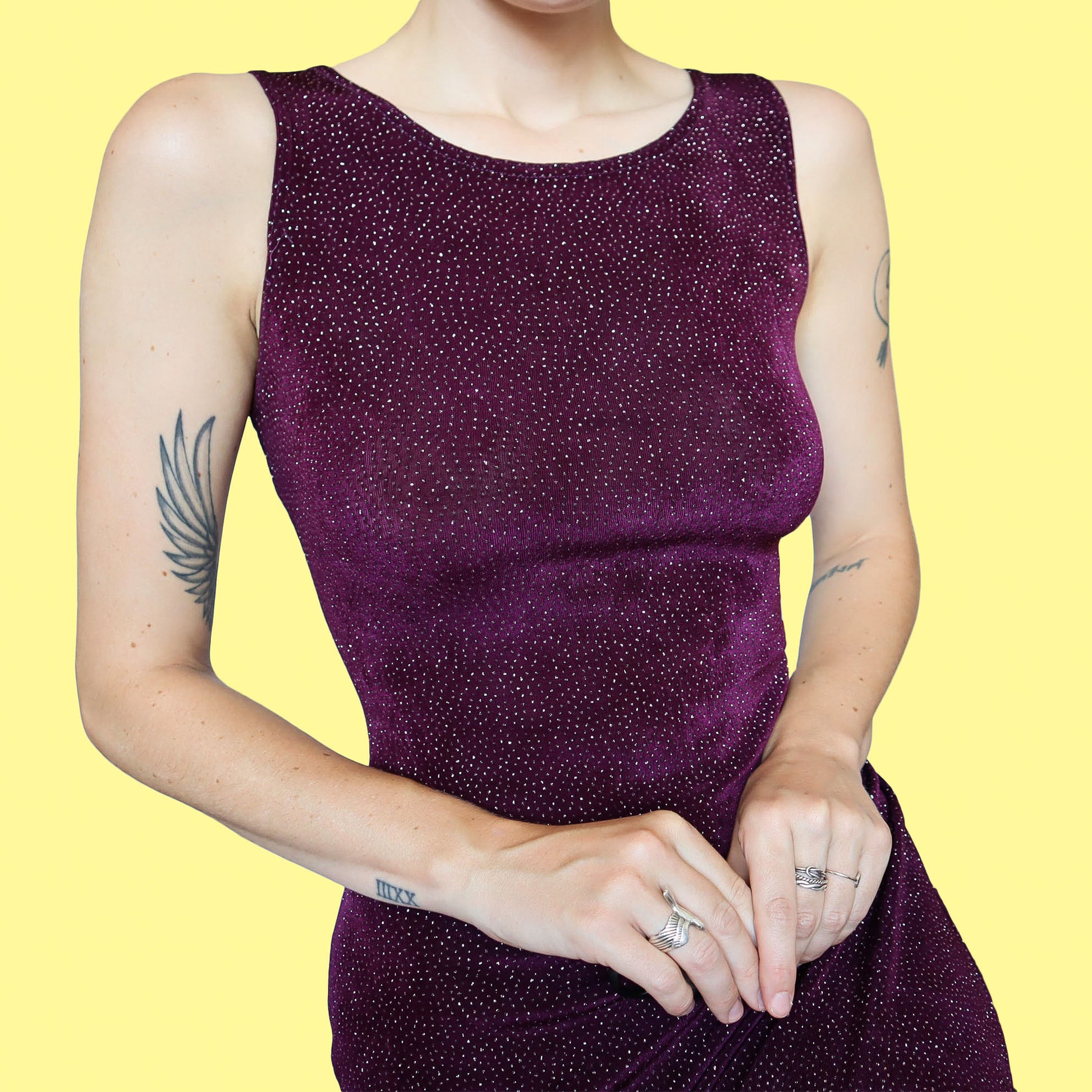 Plum glittery stretch bodycon evening dress UK 12