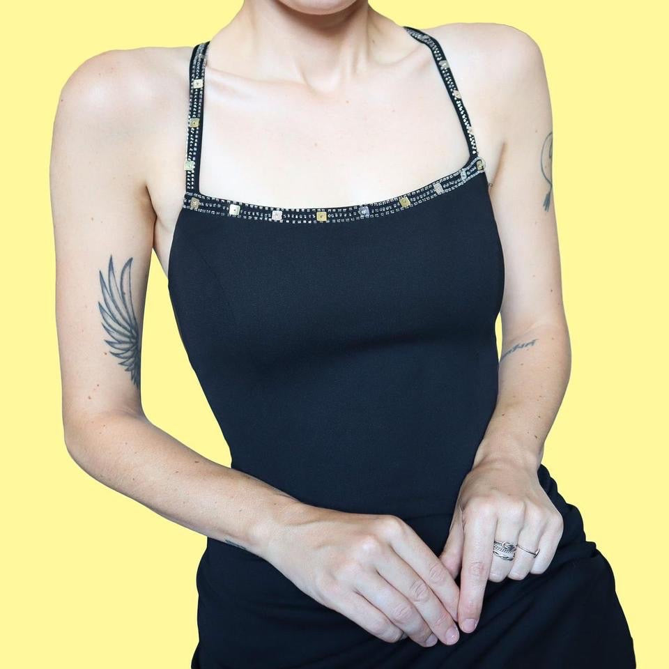 Black Dave & Johnny 90s beaded back evening dress size UK 16 & UK 18