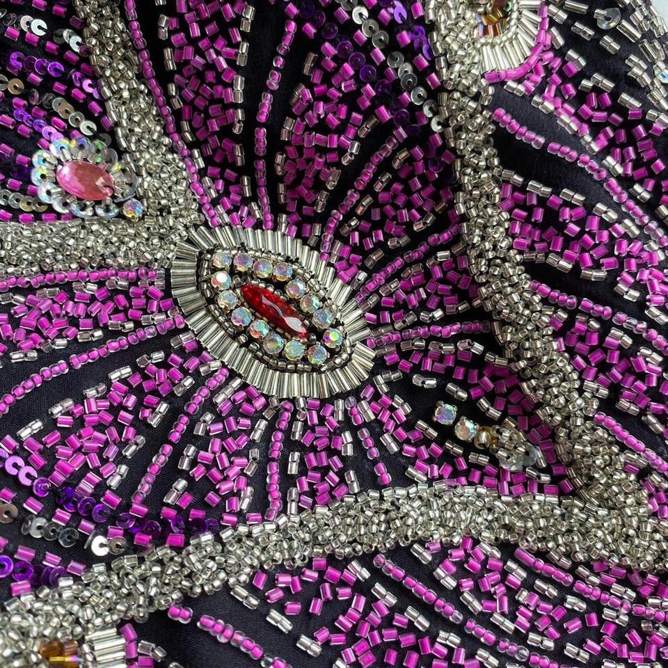 🌹Pure silk beaded evening dress UK 14🌹The most stunning faded purple 100% silk evening dress with heavy beaded detailing, a padded boned bust, a thin strap that ties at the back of the neck & a zip up the back🌹