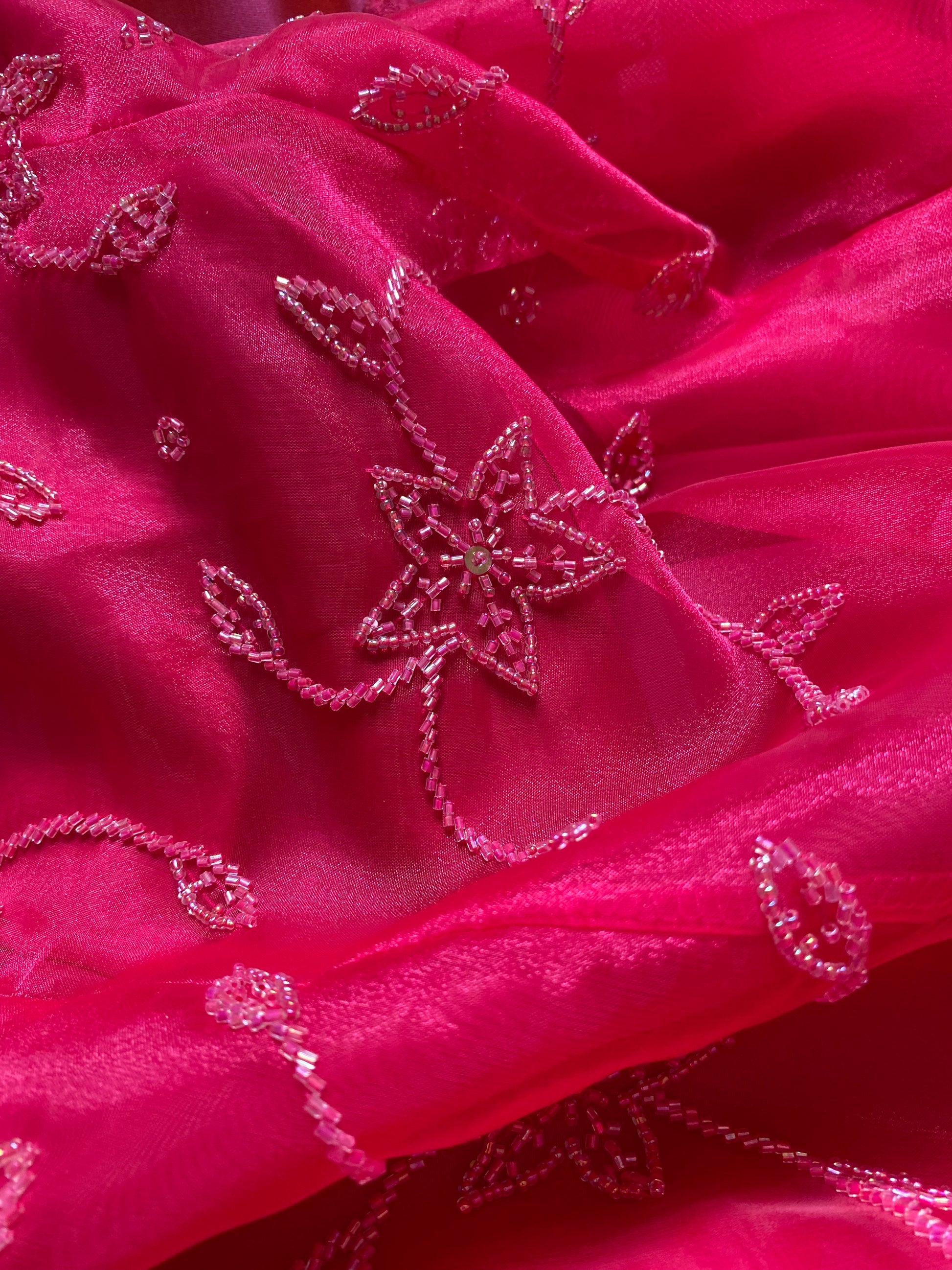 🌹Pink evening prom dress UK 10🌹Beautiful organza bright pink a-line evening dress with bead detailing, an adjustable lace up back, a netted underskirt to hold the shape of the dress, a padded bust & a zip up the back🌹