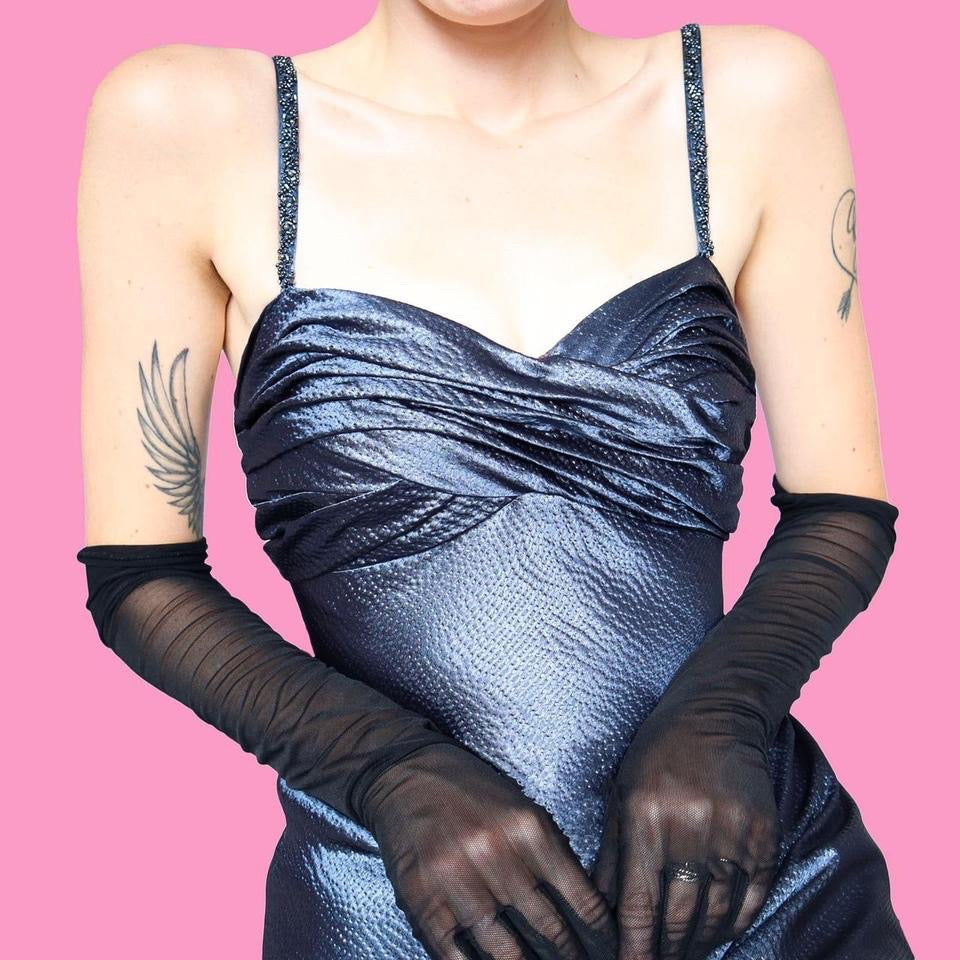 🌹Silver/blue silky textured evening dress with longer trail at the back, a gathered bust, & a zip up the back UK 10🌹
