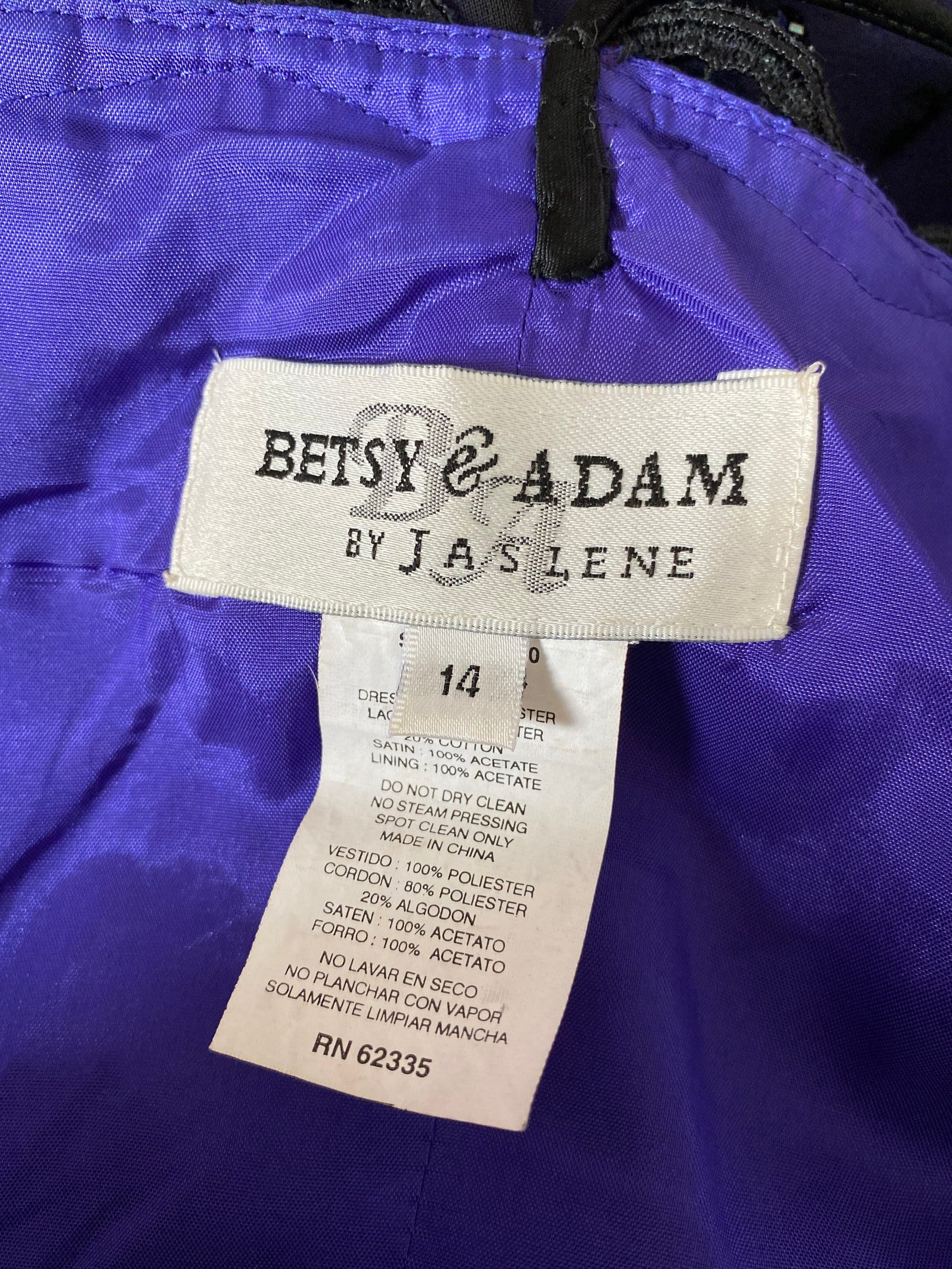 Purple evening prom dress with a black sheer glittery beaded floral overlay & a zip up the back UK 14