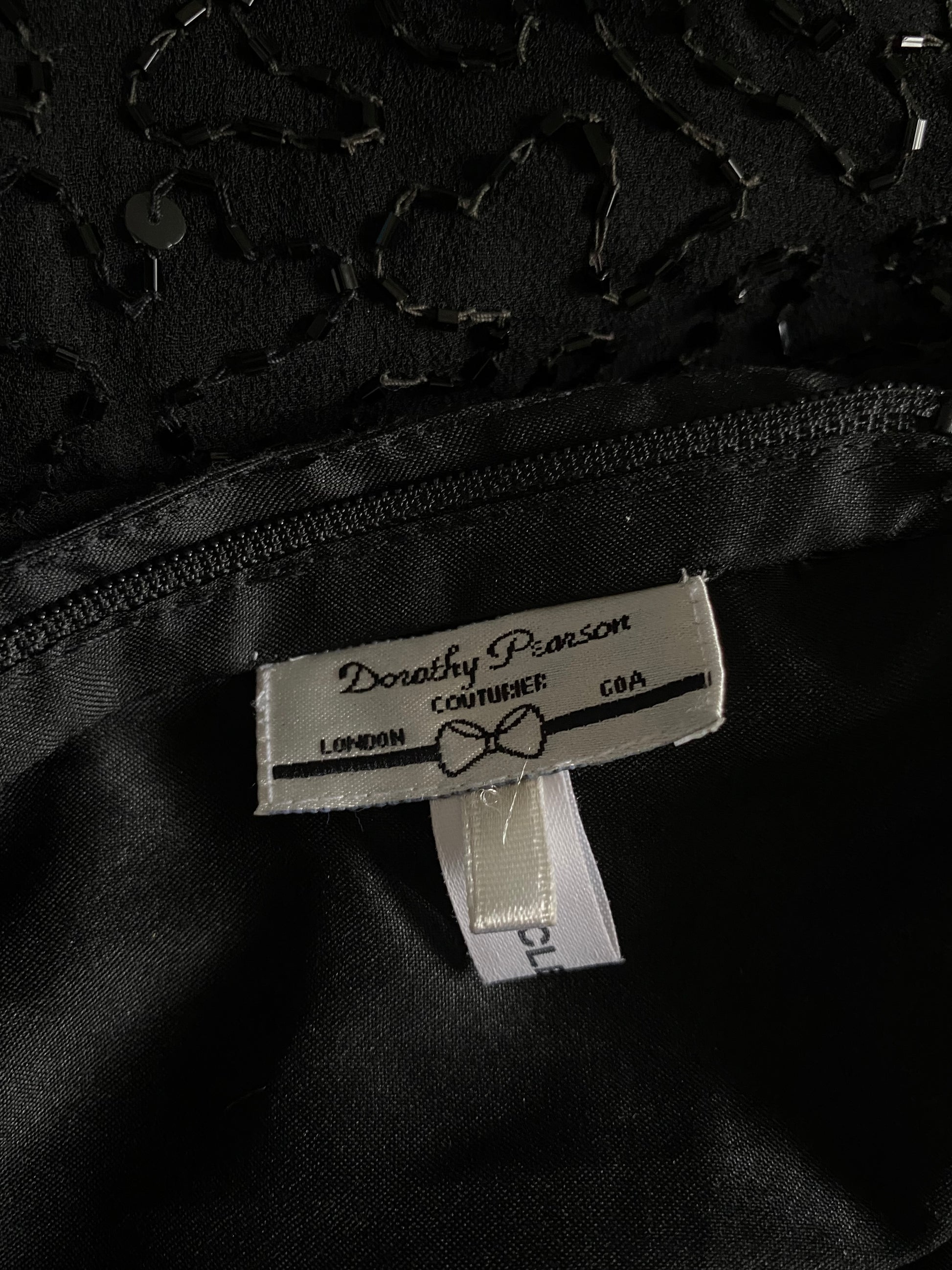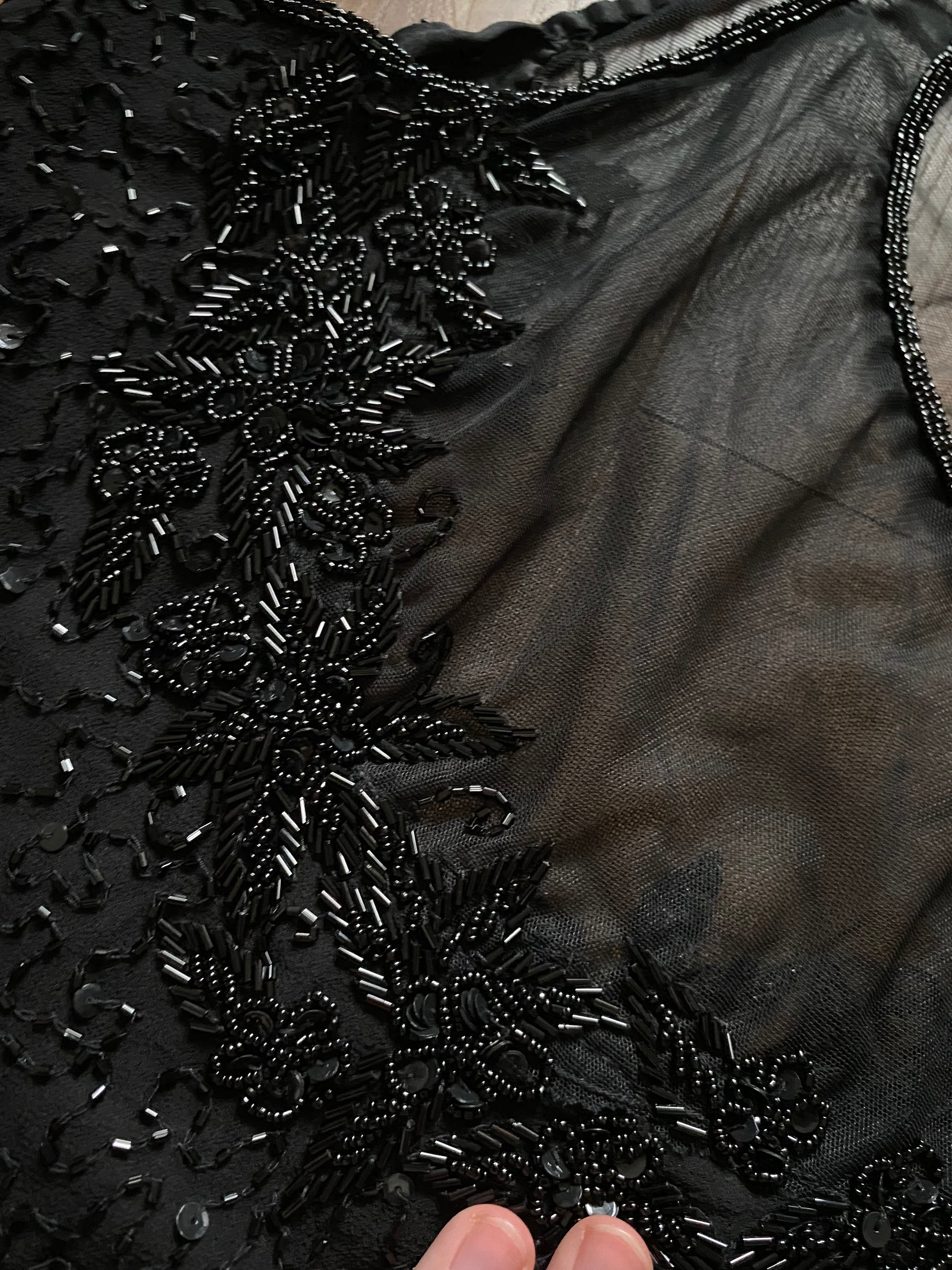 Vintage black beaded evening dress with a sheer back & bust & a zip up the side UK 8