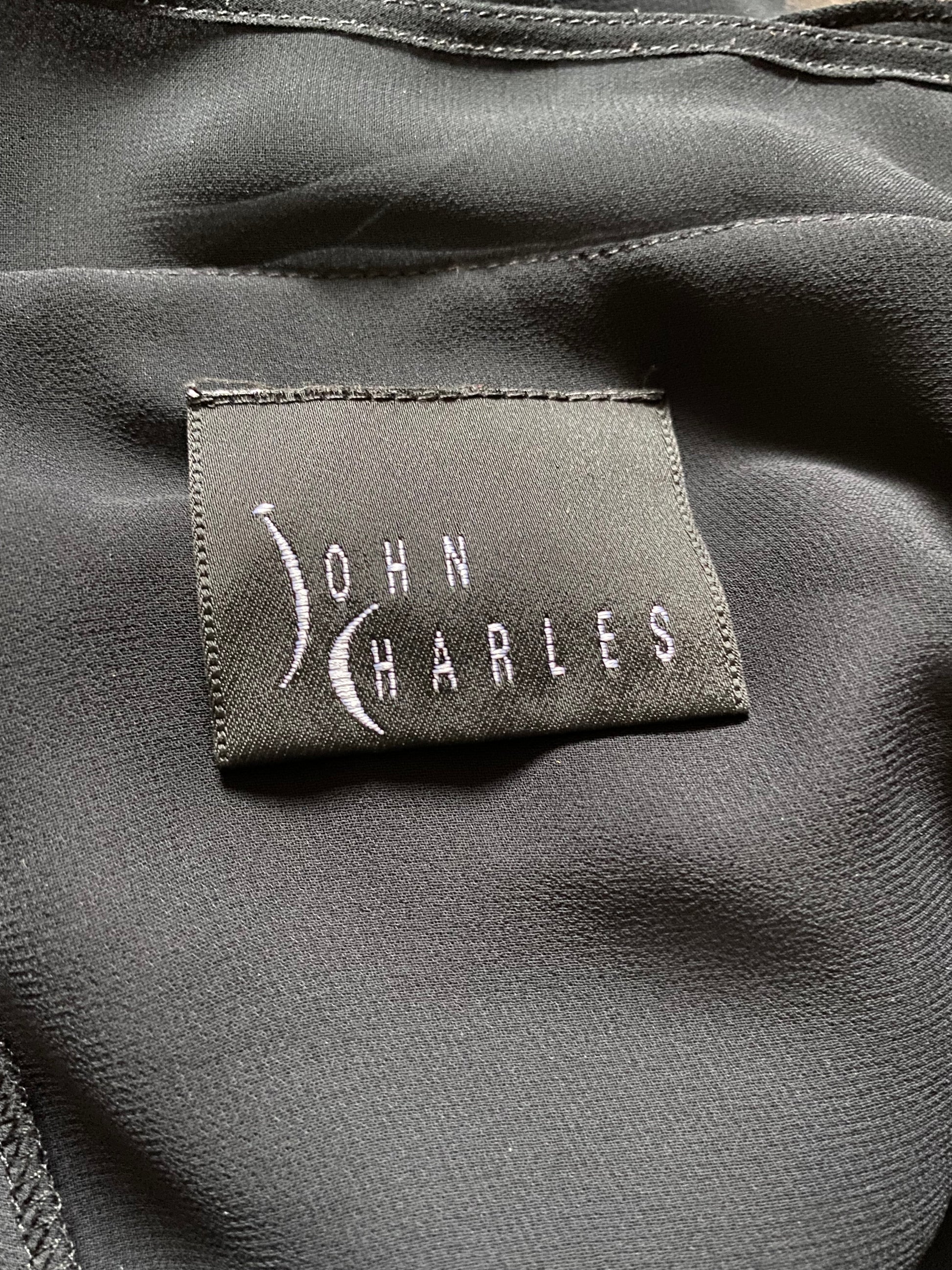 Vintage John Charles soft black chiffon layered evening dress with sheer bust & bottom hem & a zip up the side UK 10