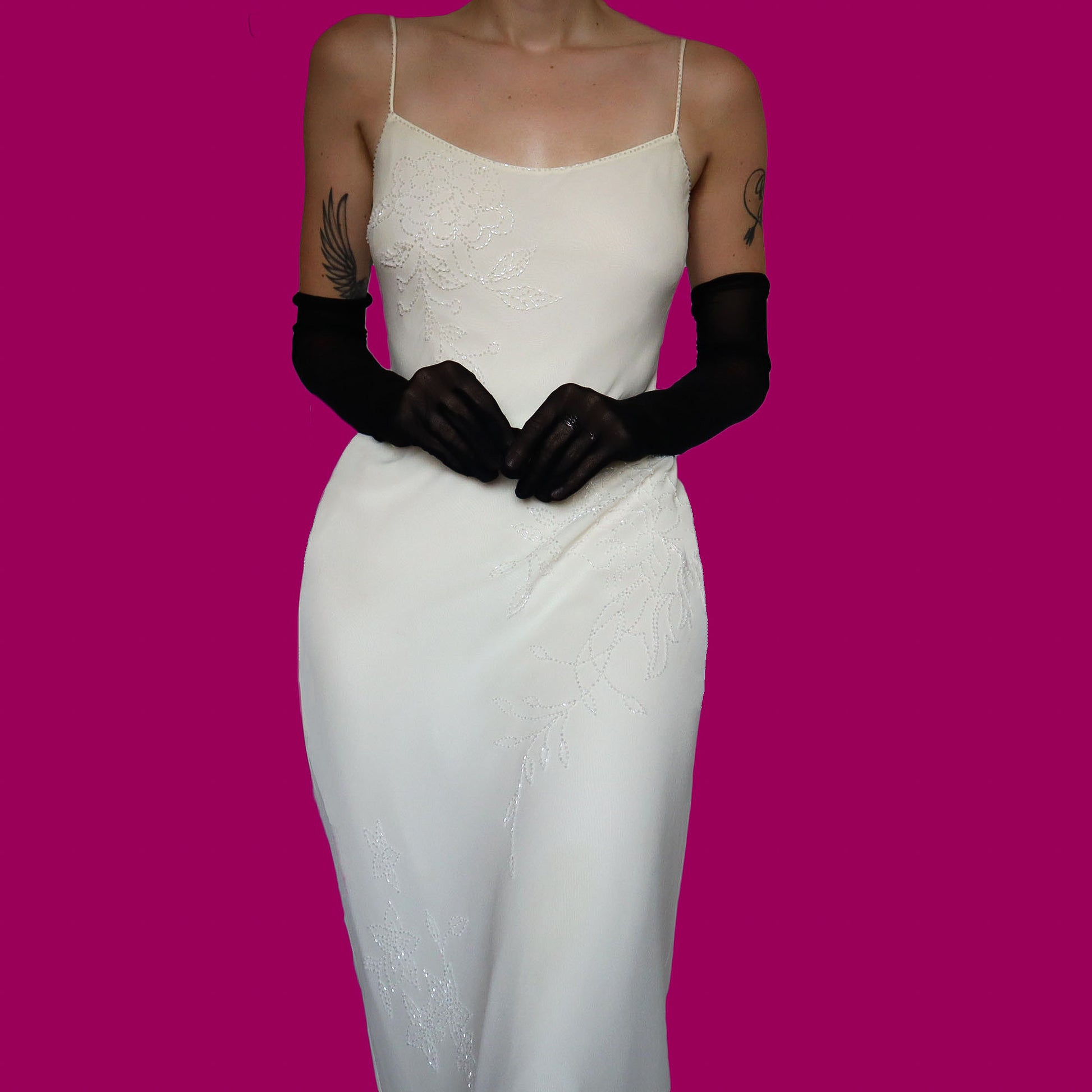 🌹Stunning 100% silk white floral beaded evening slip dress UK 10🌹