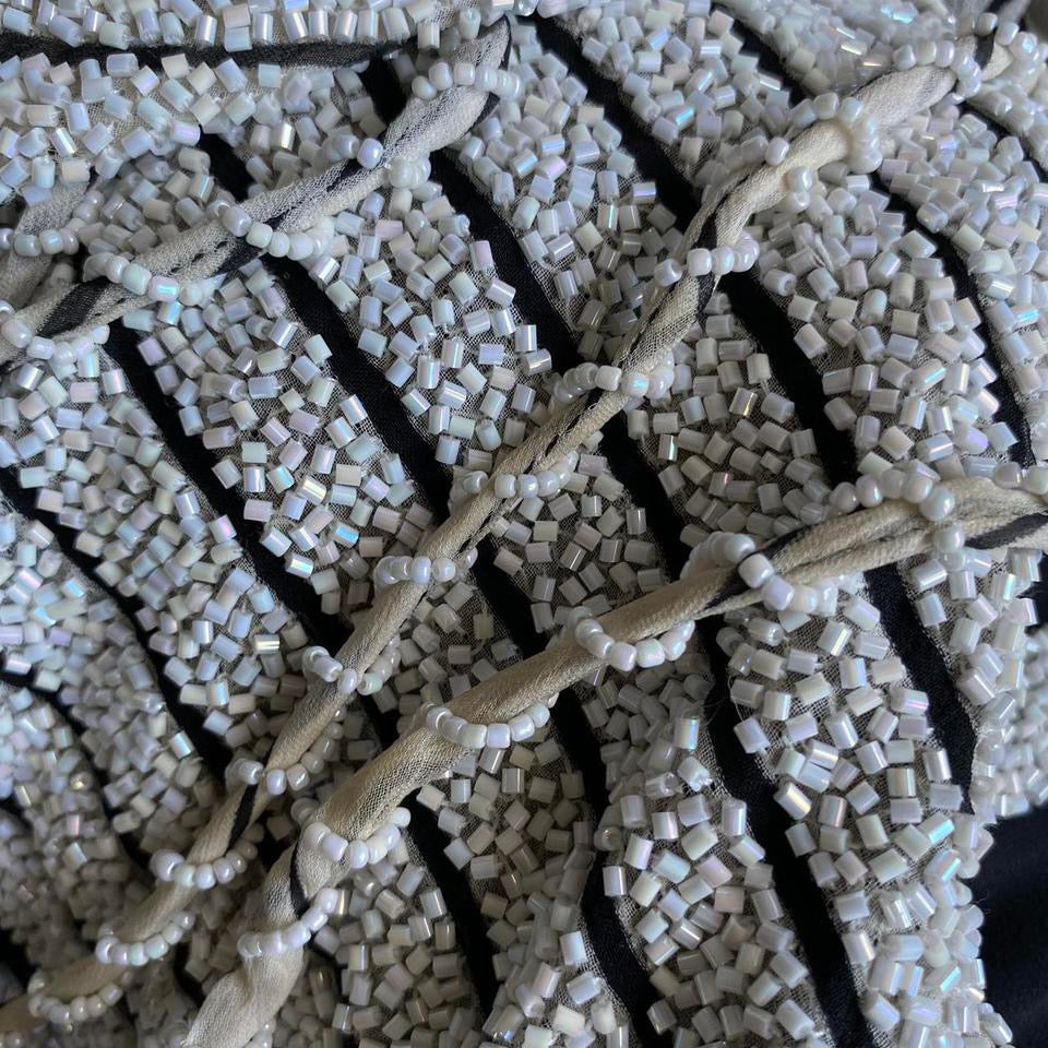 Yve London 100% silk black/white beaded evening dress UK 12